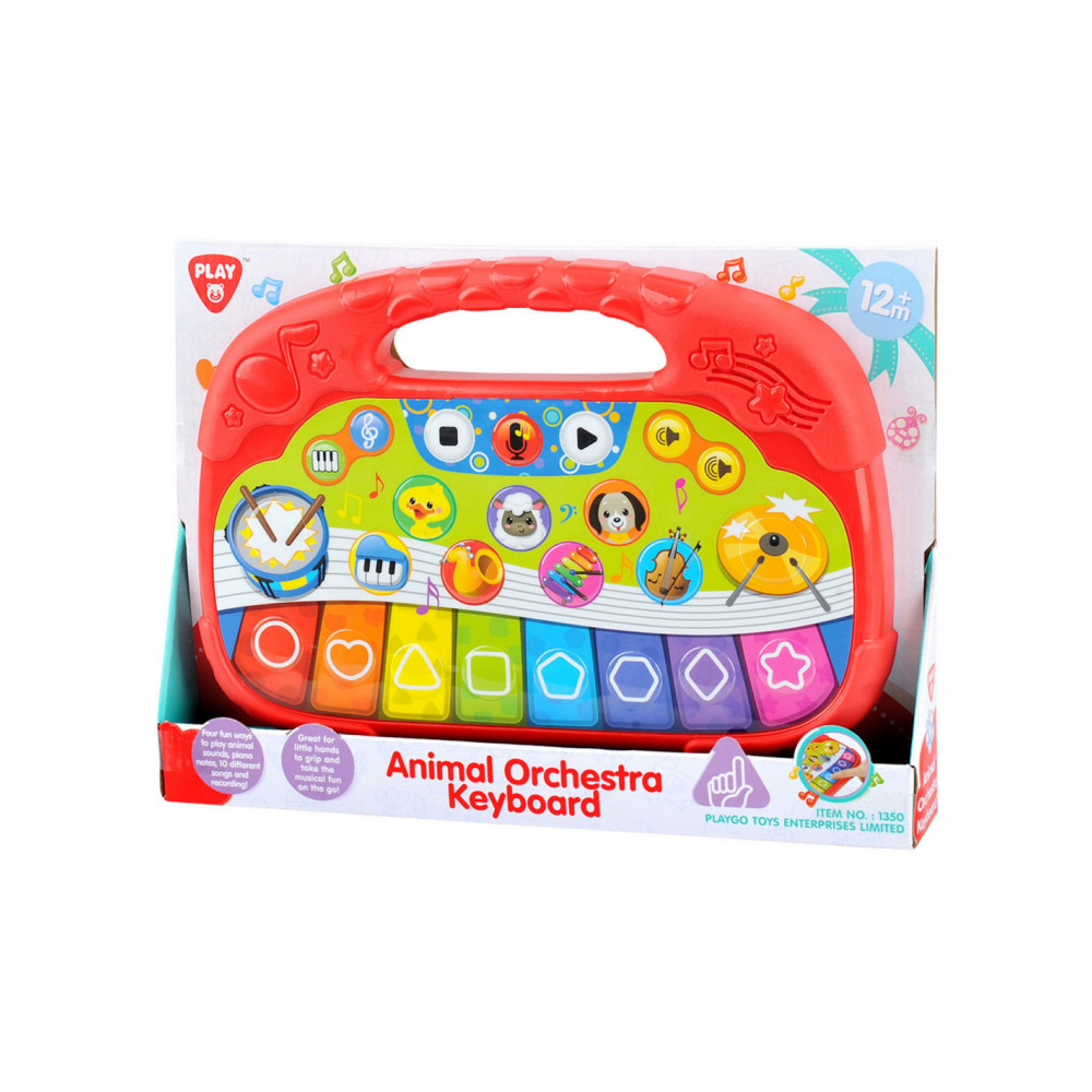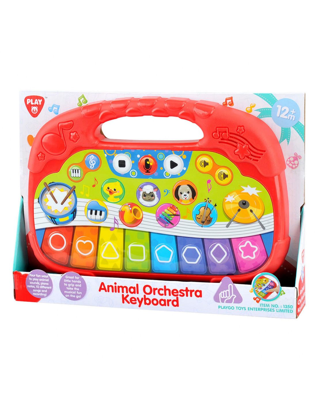 Playgo Dierenorkest Piano met dierengeluiden, muziekinstrumenten en tien verschillende melodieën. Experimenteer met het maken van liedjes en dans mee met de vrolijke muziek! Deze speelgoedpiano is gemaakt van kleurrijk kunststof en is geschikt voor kinderen vanaf 3 jaar.