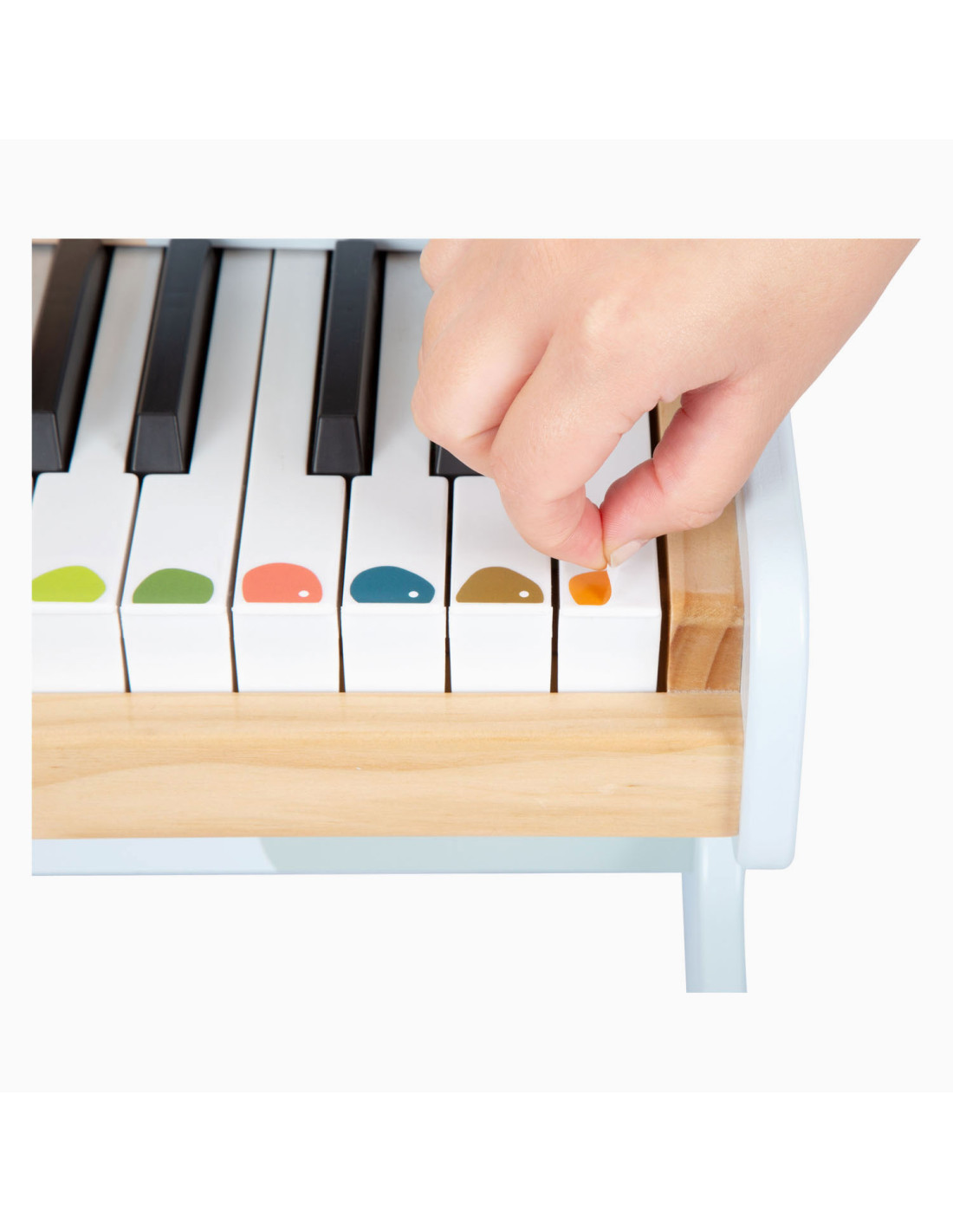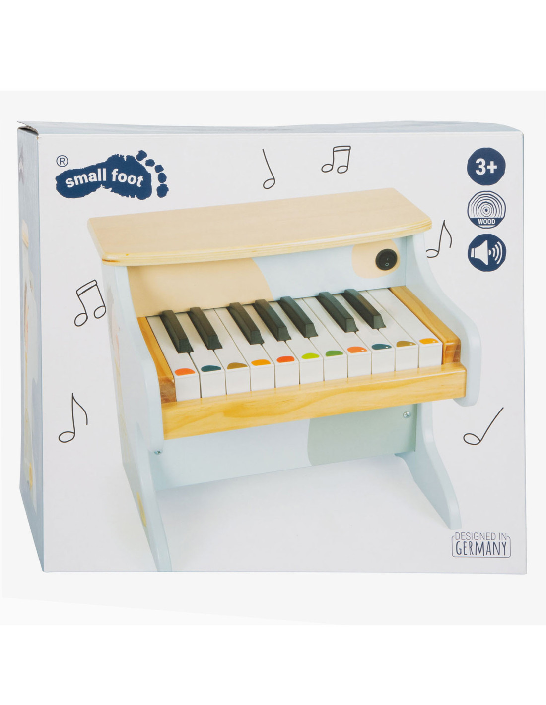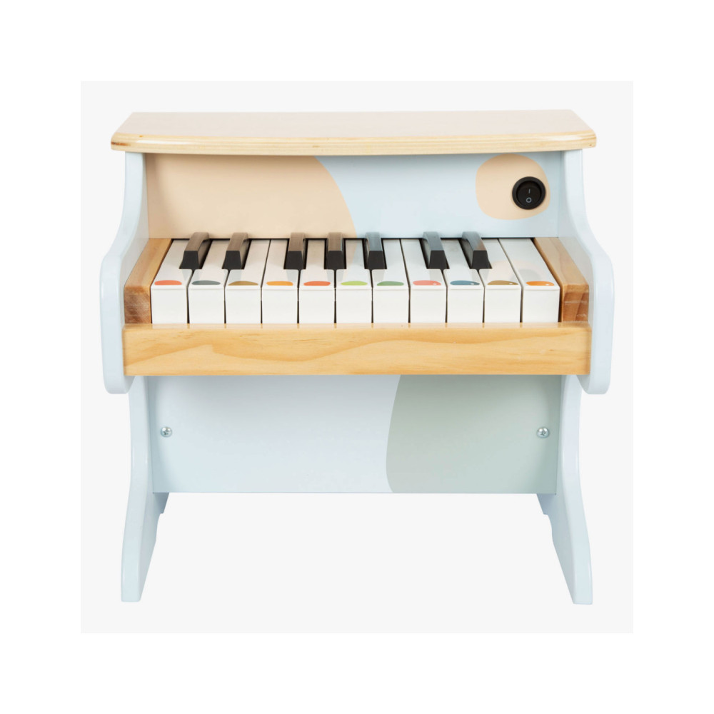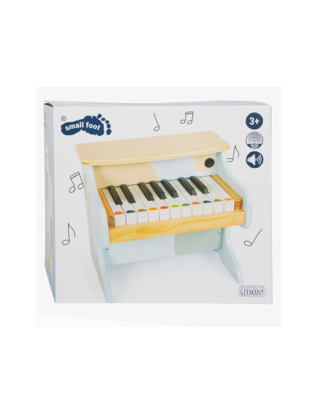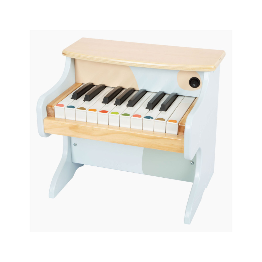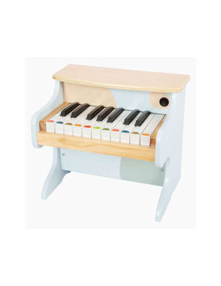 Wie begeleidt Ida de egel op de piano? Deze stevige, elektronische houten piano maakt indruk met zijn geweldige geluidskwaliteit en vrolijk design. Met een combinatie van veel natuurlijk hout, moderne blauwtinten en kindvriendelijke motieven is deze piano ook de absolute blikvanger van het orkest in de kinderkamer! De meegeleverde stickers die op de toetsen kunnen worden geplakt, ondersteunen de jonge muzikanten bij hun eerste liedjes. Wordt geleverd met bladmuziek. Batterijen niet inbegrepen.