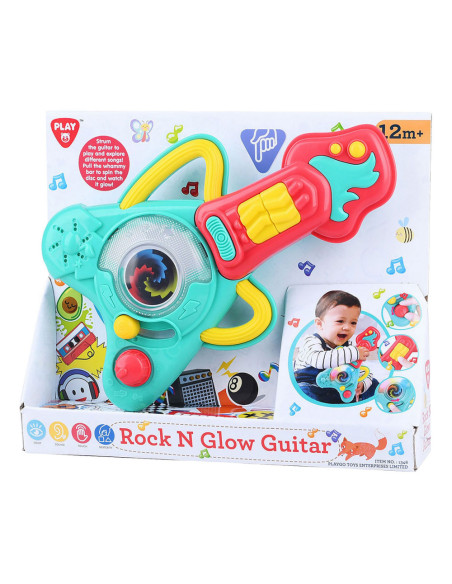 Speelgoedgitaar voor de allerkleinsten met verschillende leuke interactieve licht- en geluidsfuncties. Inclusief 3 AAA-batterijen. Geschikt voor kinderen vanaf 12 maanden oud.