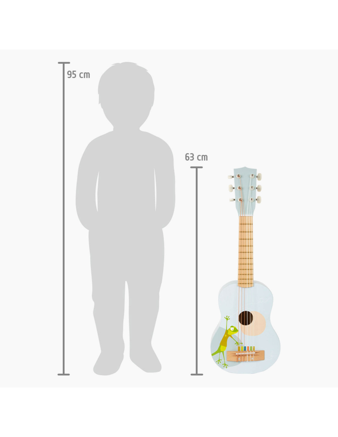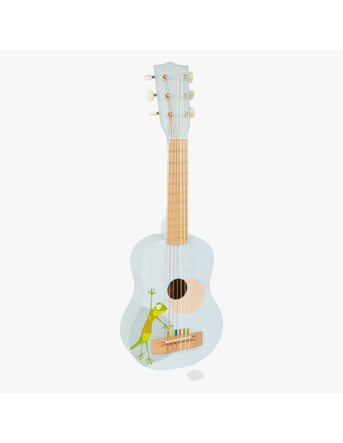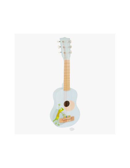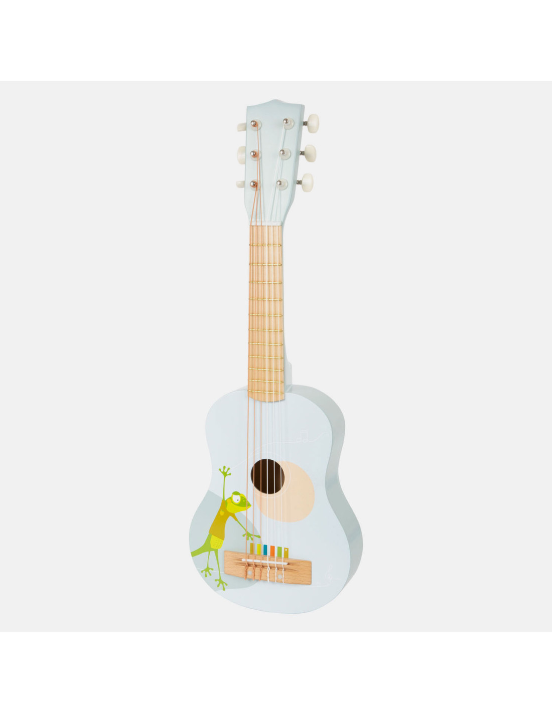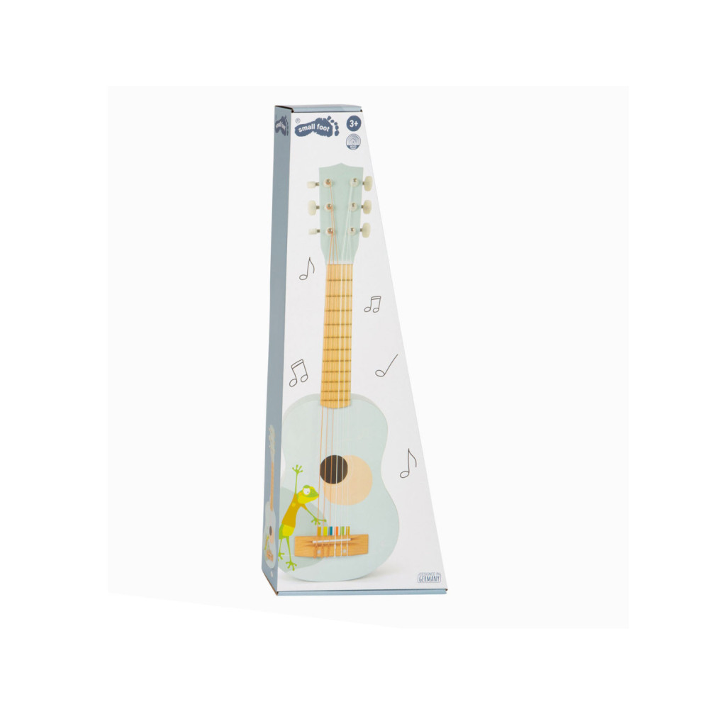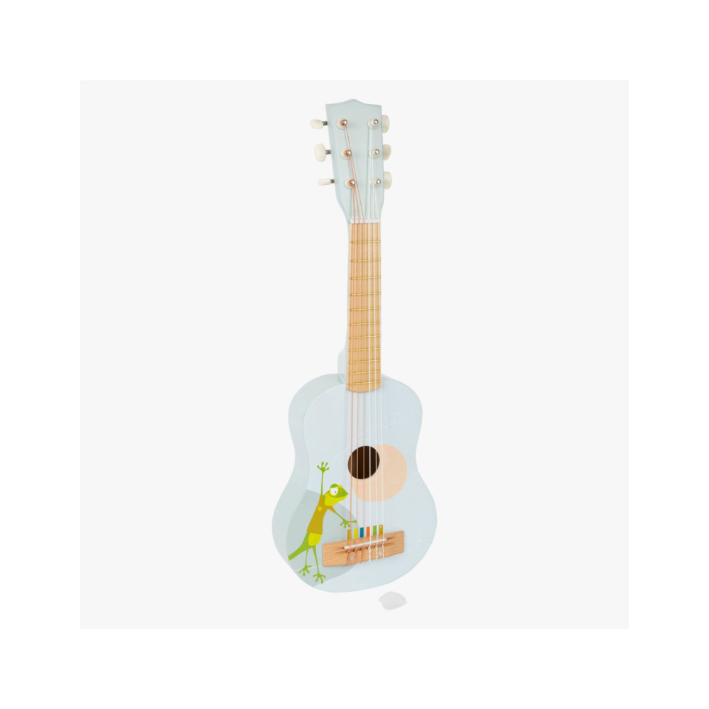 Gerd de gekko speelt gitaar! Deze bijzonder lichte akoestische gitaar in kindvriendelijk formaat maakt indruk met zijn vrolijke design en de combinatie van natuurlijk hout en moderne blauwe kleuren! En hier is een hoogtepunt: de snaren zijn gekleurd volgens een toonladder en ondersteunen kinderen bij het leren van hun eerste liedjes! Incl. bladmuziek en twee plectrums voor grote en kleine handen.