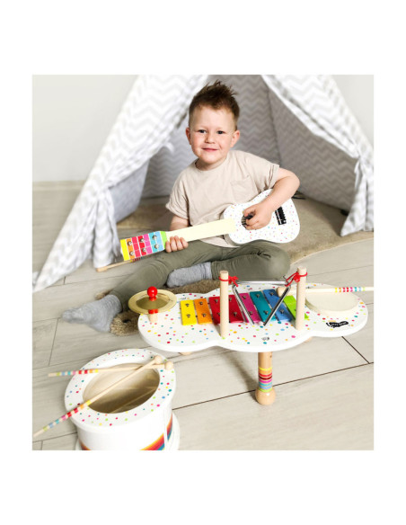 Een gitaar is een essentieel onderdeel van een band. De speelkamer zal rocken met dit kleurrijke muziekinstrument. Het kan worden gebruikt om de eerste akkoorden te leren en een gevoel voor ritme volgt automatisch.