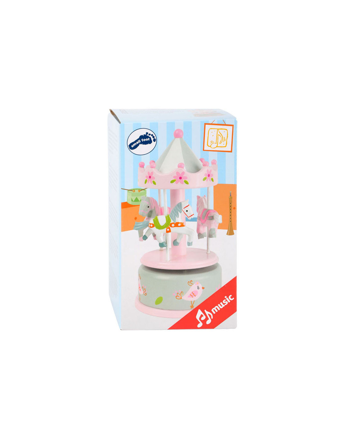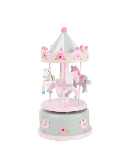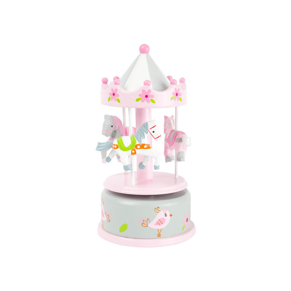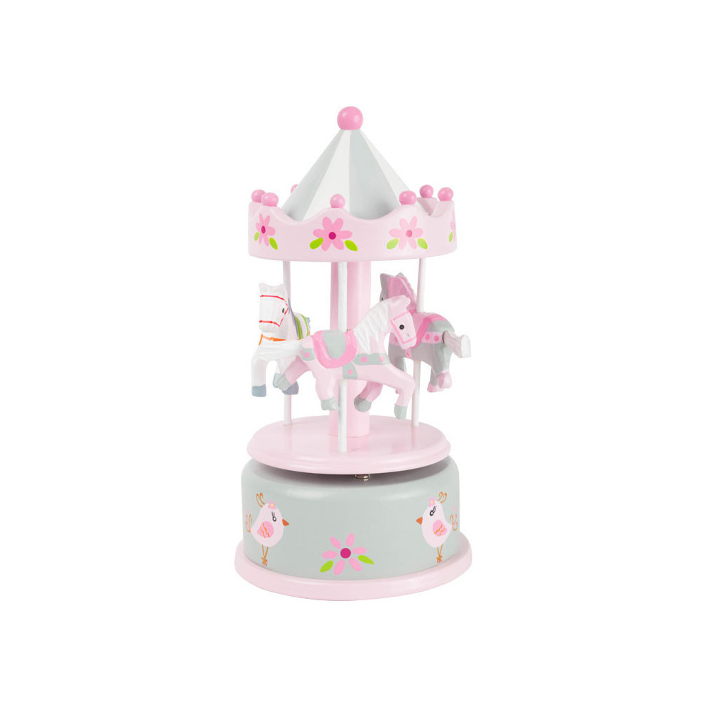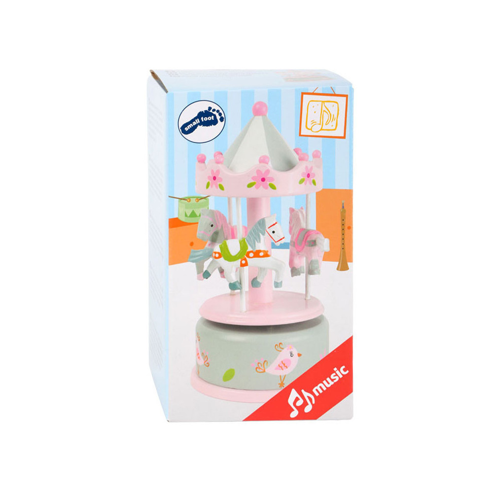 Wie is hier al in slaap gevallen? Deze klassieke houten muziekdoos zal elk kind in slaap brengen. De rotondepaarden draaien vrolijk rond op de melodie van "Waar moet ik beginnen?". De decoratieve kleuren en het nostalgische design maken van deze box een echte eyecatcher op het nachtkastje. Wie windt de muziekdoos nog een keer op?