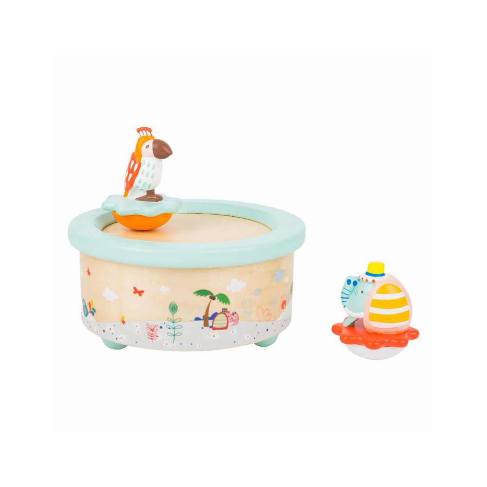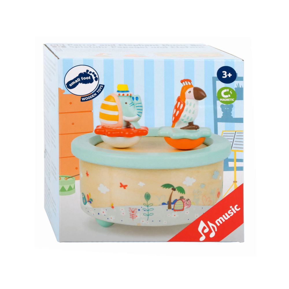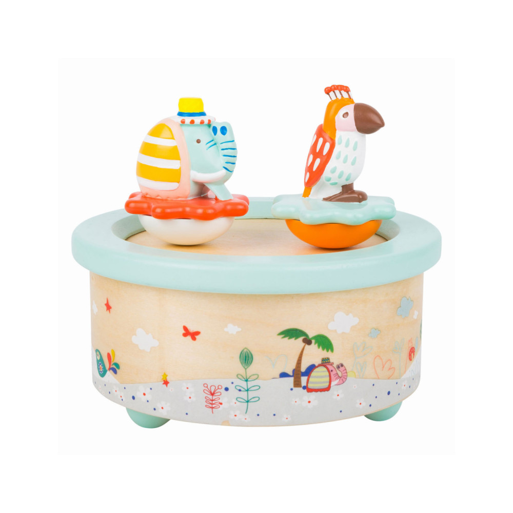 Deze papegaai en olifant willen dansen! Als de dag ten einde loopt, draaien deze schattige dieren vrolijk rond op hun kleurrijke voetstuk op de rustgevende melodie "Wonderful World". Als het lied voorbij is, is het tijd om te slapen. Een prachtig slaaphulpmiddel voor op het nachtkastje. Geschikt vanaf 3 jaar.