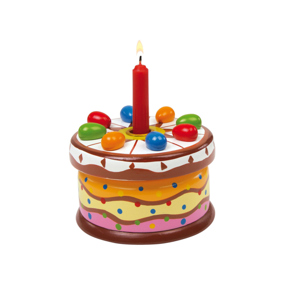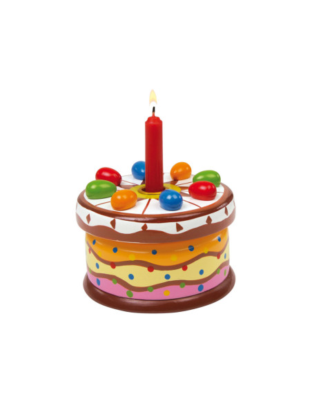 Een prachtige verjaardagsdecoratie met kleurrijke elementen en een melodie! Het feest wordt nog beter met de melodie "Happy birthday". De aluminium houder kan gebruikt worden voor een houten of echte kaars. Echte kaarsen niet inbegrepen.