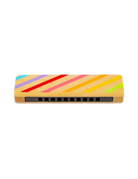 Deze felgekleurde houten mondharmonica zal zeker in de smaak vallen bij jonge kinderen. Ideaal om te oefenen bij het maken van muziek en het bespelen van een instrument!