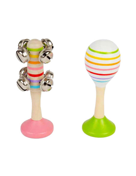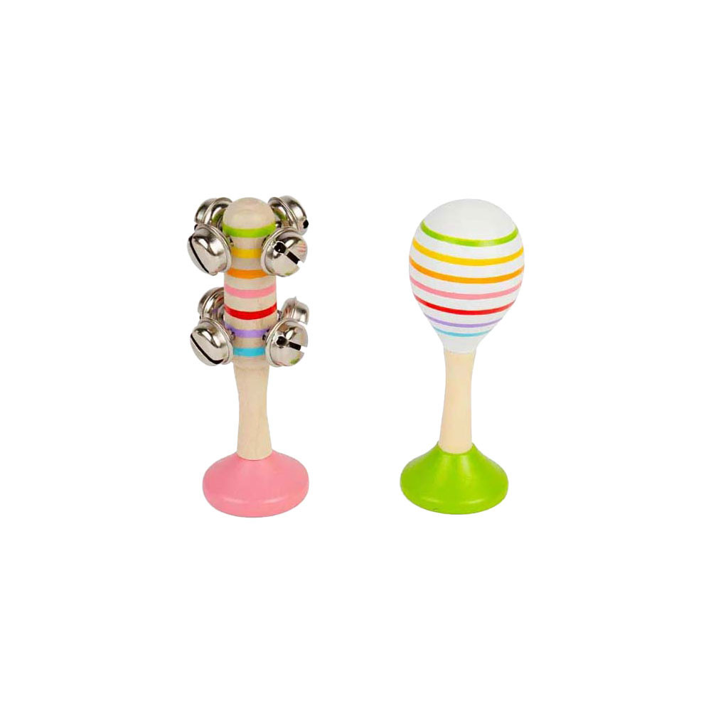 Voel het ritme met onze geweldige muzikale Shakers Set! Dit tweedelige muziekspeelgoed wordt geleverd met een tamboerijnstok en een mini-maraca! Deze kleine percussie-instrumenten zijn gestyled met zachte regenboogstrepen en hebben een gemakkelijk vast te pakken houten ontwerp en zachte ratelende geluiden.