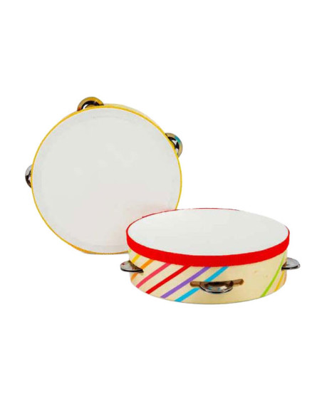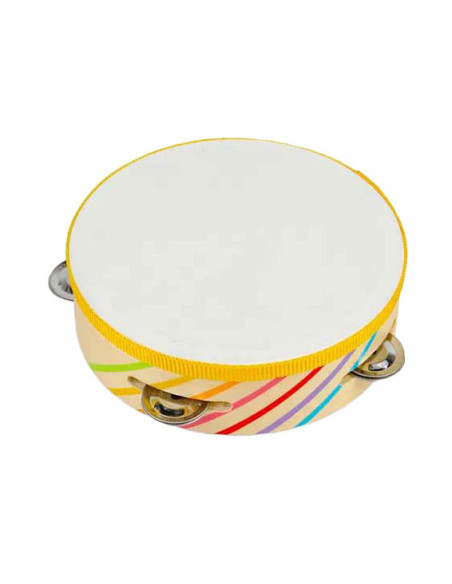 Jonge muzikanten zullen genieten van het vastpakken en schudden van deze kleurrijke speelgoedtamboerijn met regenboogstrepen . Ideaal voor het beginnen met muziek maken en het ontwikkelen van de liefde voor muziek bij kinderen.
