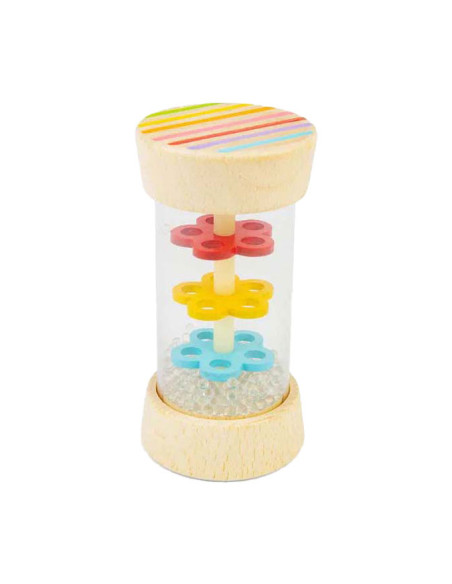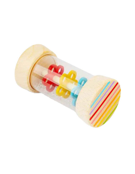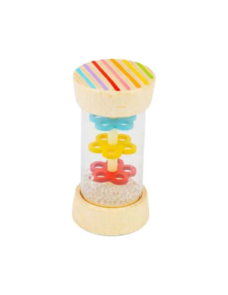 Laat jouw kleintje kennismaken met de magie van geluid en kleur met onze mini regenstok! Terwijl je kleintje schudt met de rainstick, maken de balletjes rustgevende geluiden van zachte regenval!