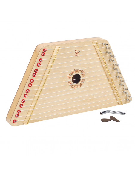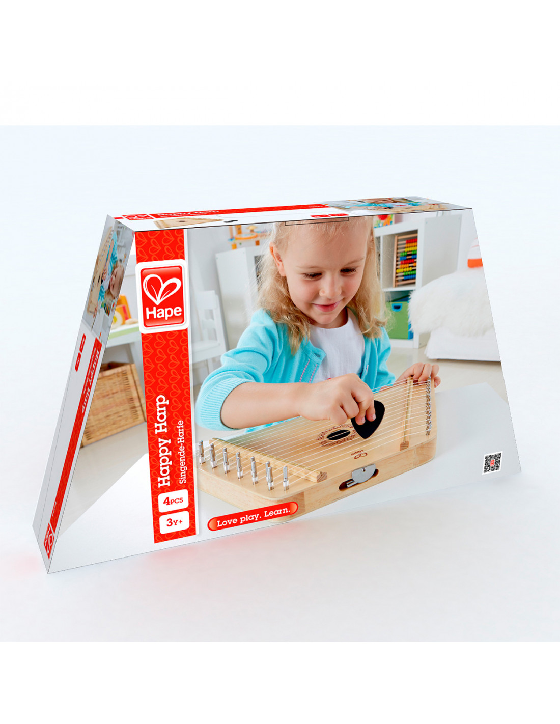 Dit 5-delige houten Hape tokkelinstrument is erg geschikt voor kleine handjes. Inclusief 3 accessoires om muziek mee te maken.