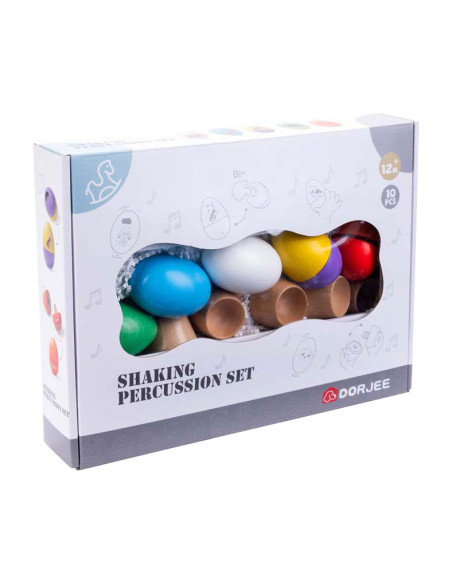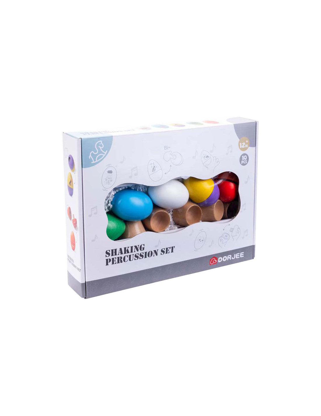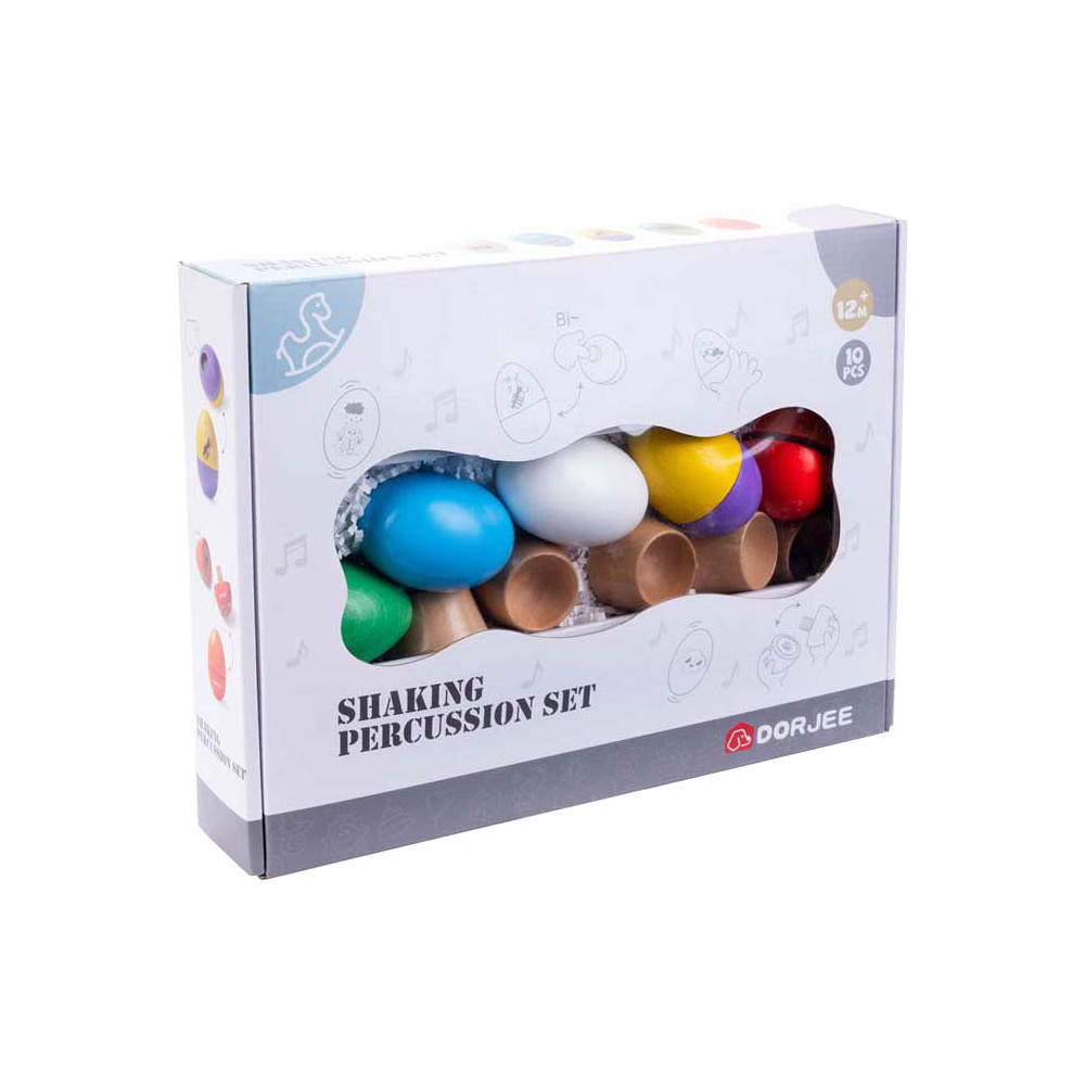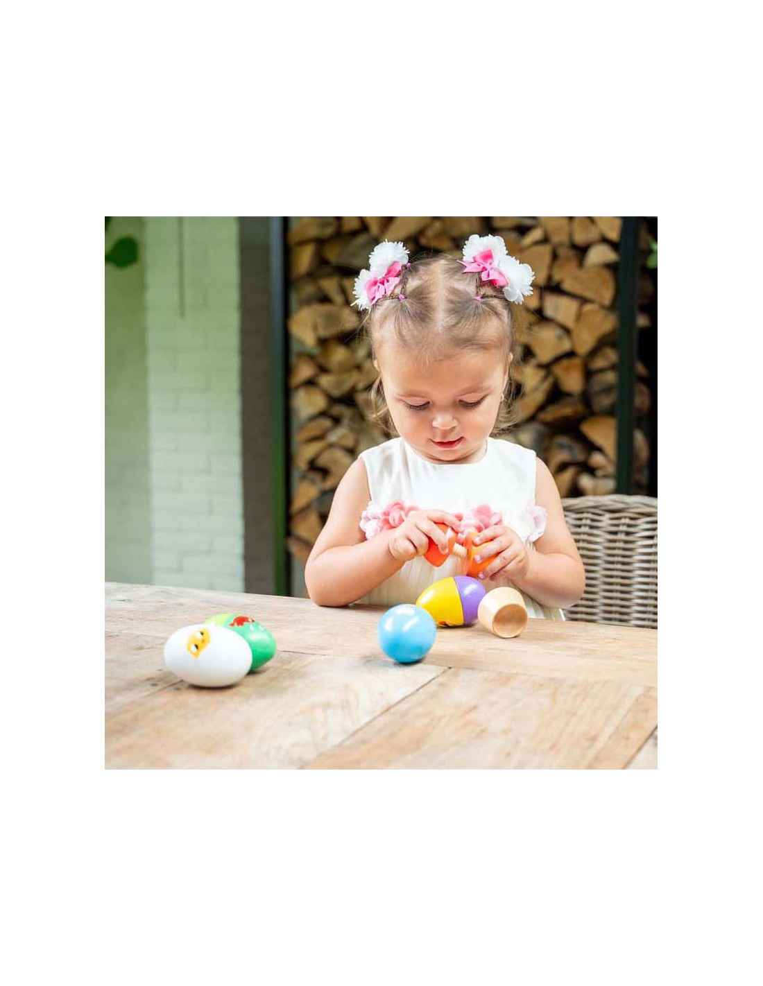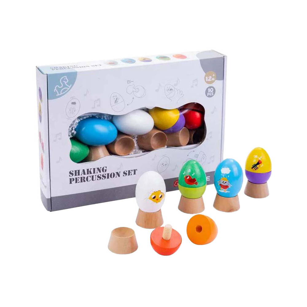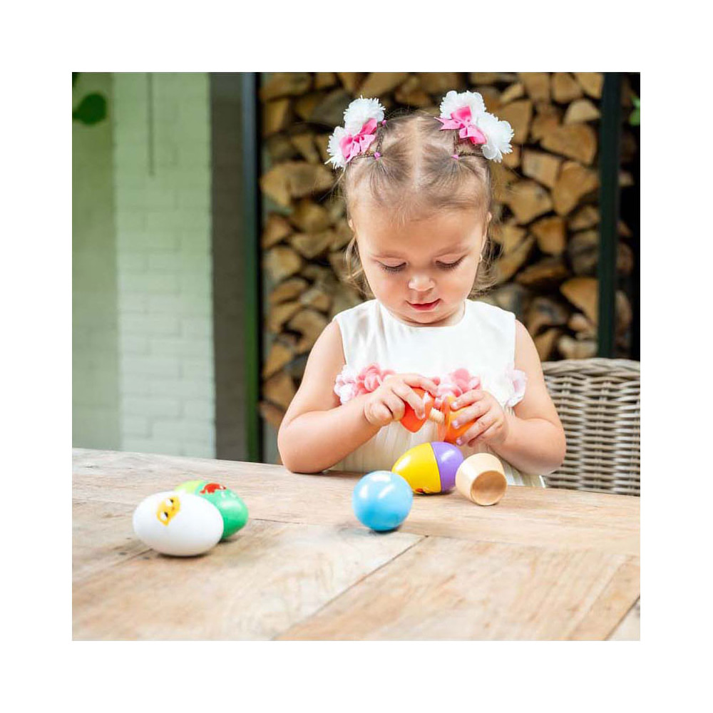 Gekleurde houten percussie eieren, 5 stuks inclusief 5 houders. Geschikt voor kinderen vanaf 12 maanden.