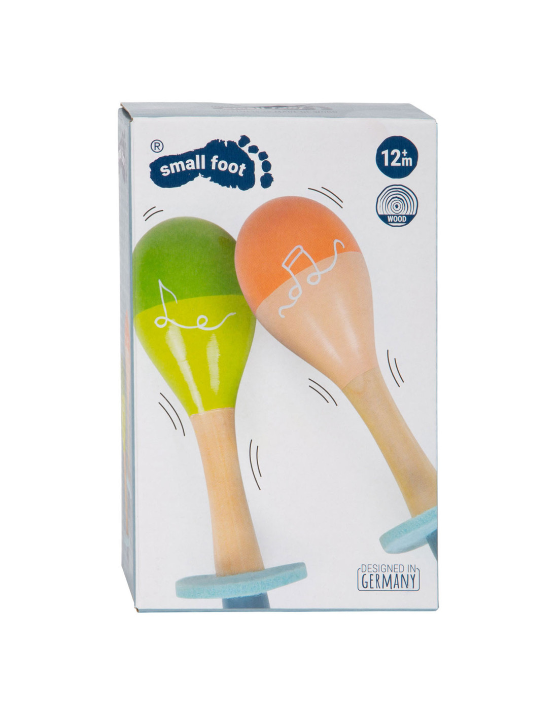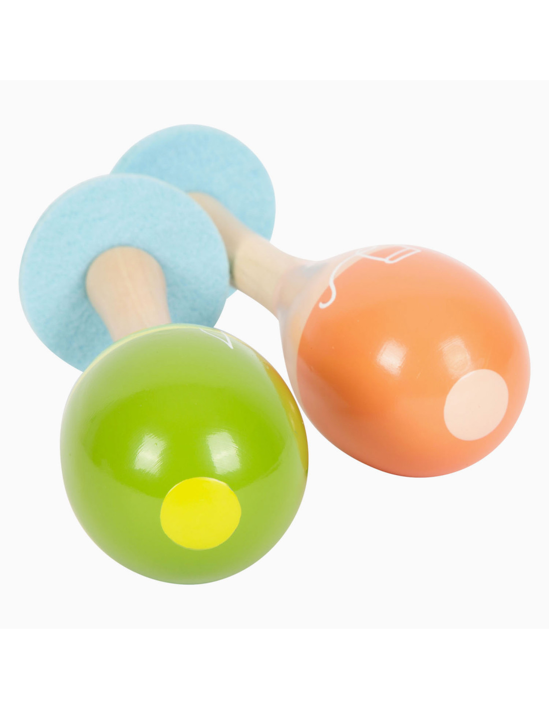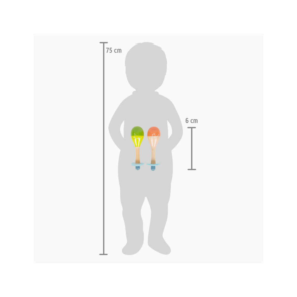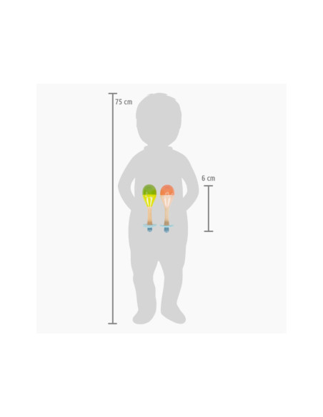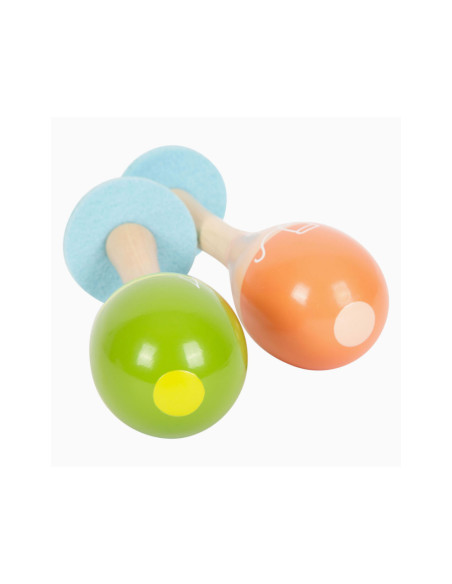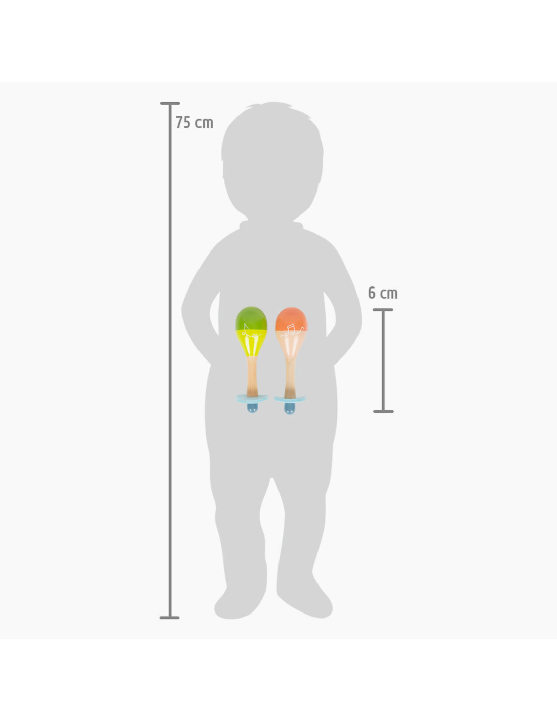Deze soepele, prettig vast te houden maracas van robuust, massief hout zijn ideaal voor jonge beginnende muziekmakers die hun eerste ervaringen met ritme en het maken van geluiden opdoen! Deze klassieke muziekrammelaars passen dankzij hun vorm bijzonder goed in de handen van jonge kinderen en maken een sterke visuele indruk door de combinatie van natuurlijk hout en moderne, contrasterende kleuren! Met vilten beschermers voor de nek zijn deze maracas ook geschikt voor kinderen onder de 3 jaar. De nieuwe favorieten voor jonge klankontdekkers in de kinderkamer! Naast akoestische perceptie trainen maracas ook het gevoel voor ritme en beat, evenals hand-oogcoördinatie. Ze zijn ideaal voor vroege muzikale opvoeding!