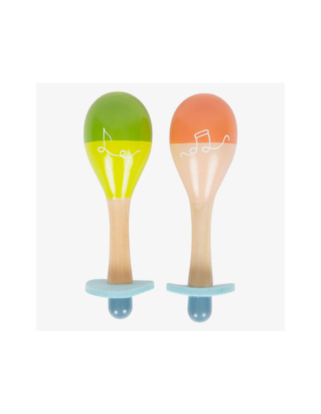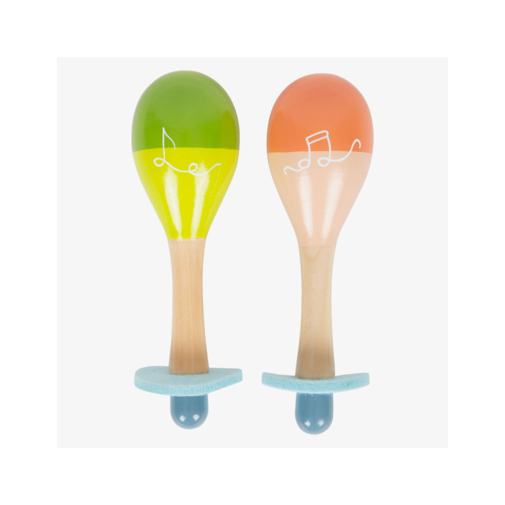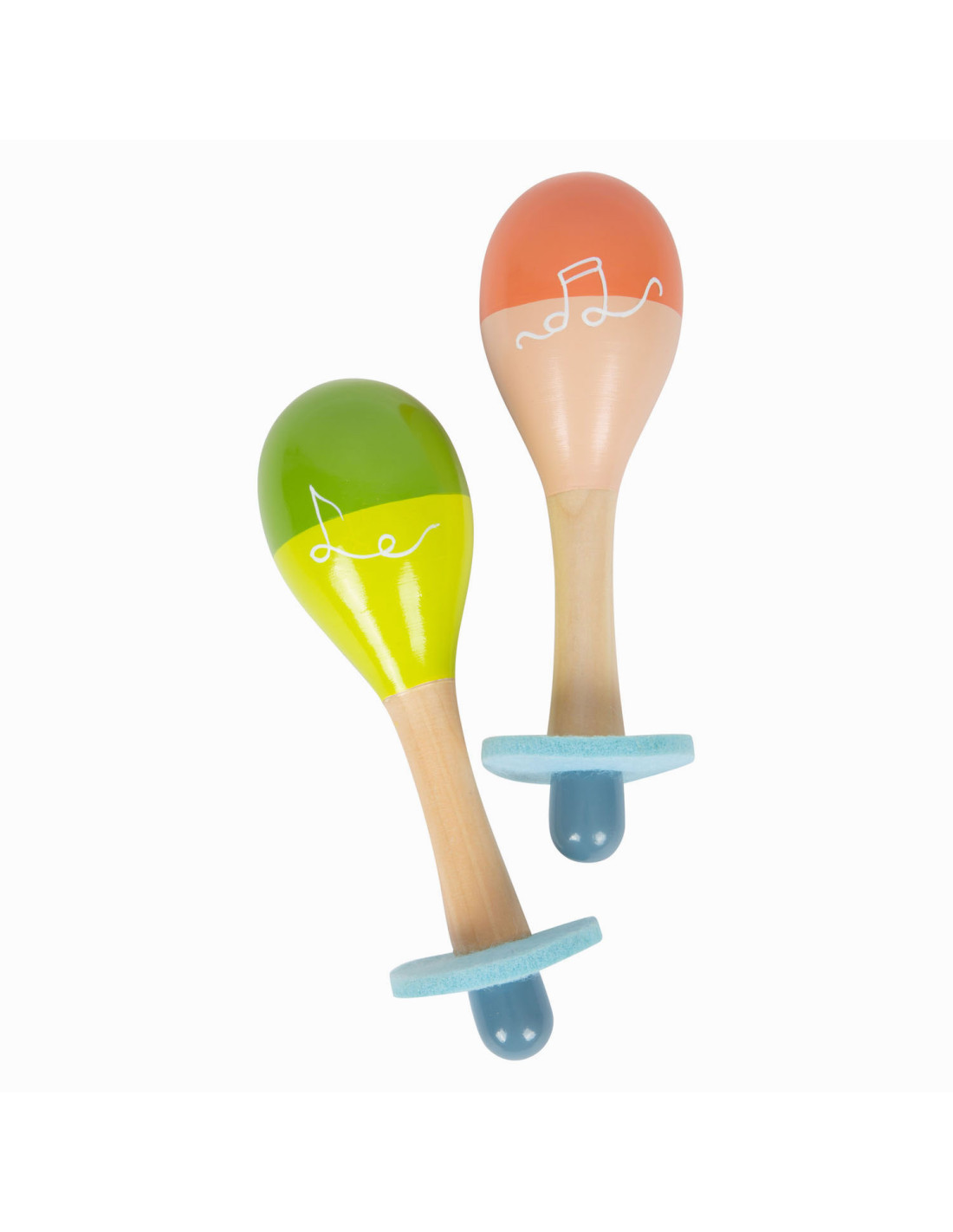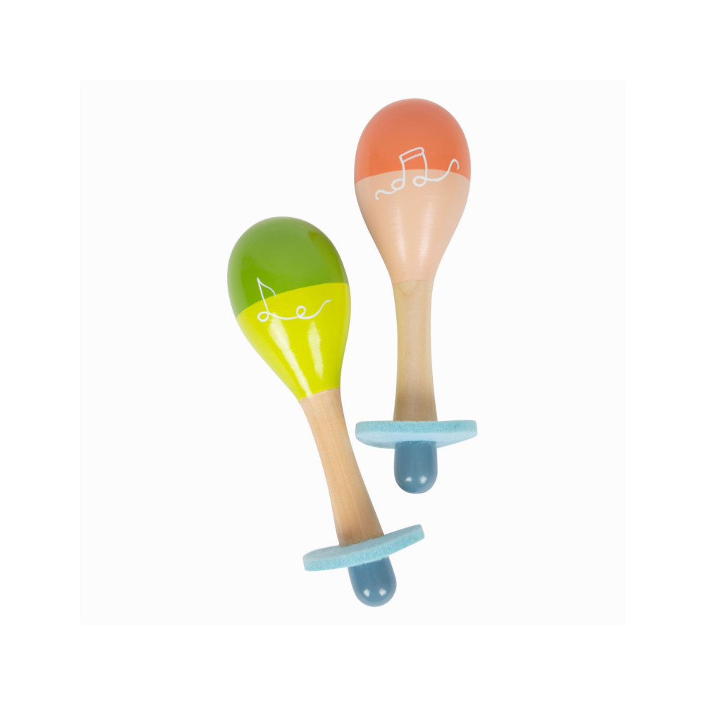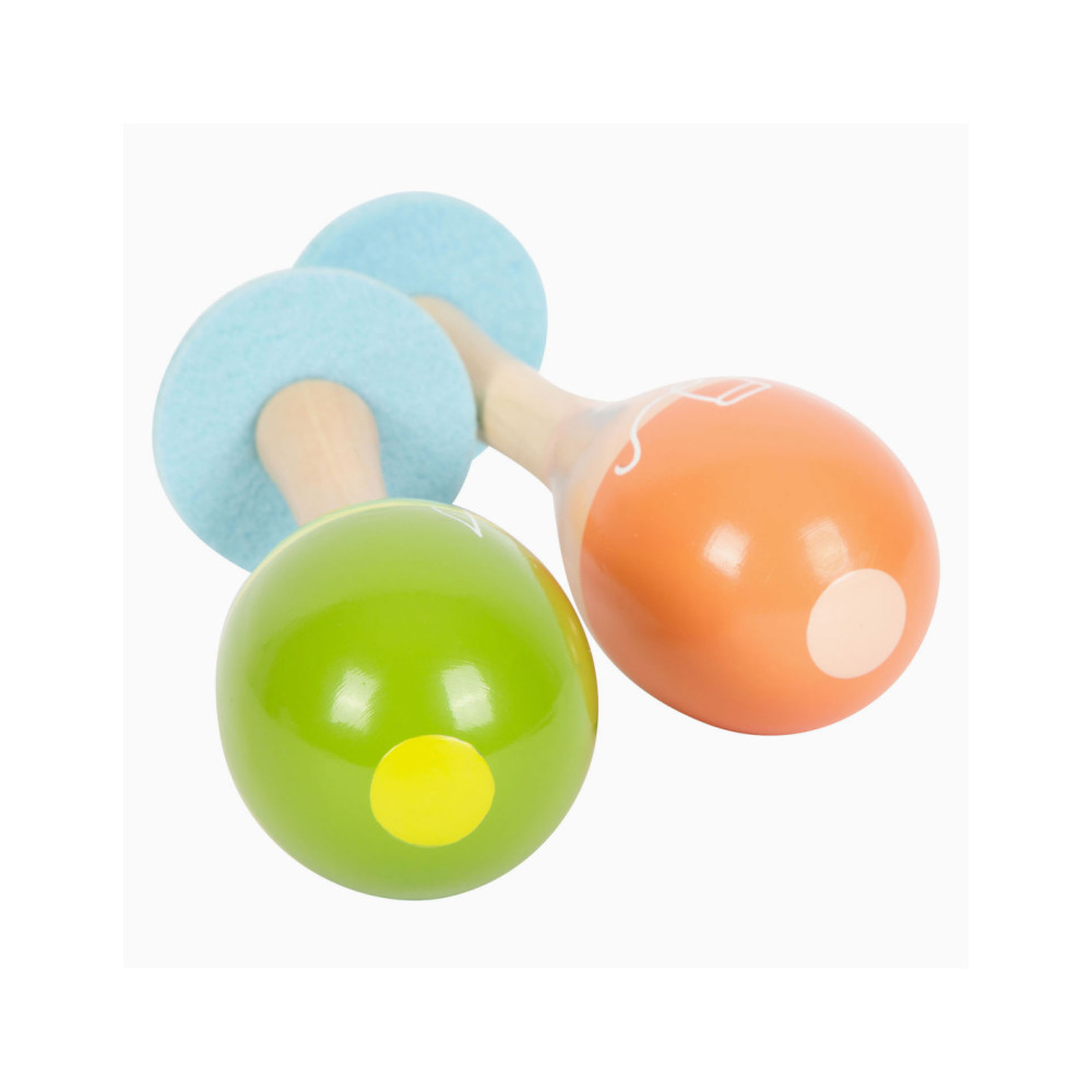 Deze soepele, prettig vast te houden maracas van robuust, massief hout zijn ideaal voor jonge beginnende muziekmakers die hun eerste ervaringen met ritme en het maken van geluiden opdoen! Deze klassieke muziekrammelaars passen dankzij hun vorm bijzonder goed in de handen van jonge kinderen en maken een sterke visuele indruk door de combinatie van natuurlijk hout en moderne, contrasterende kleuren! Met vilten beschermers voor de nek zijn deze maracas ook geschikt voor kinderen onder de 3 jaar. De nieuwe favorieten voor jonge klankontdekkers in de kinderkamer! Naast akoestische perceptie trainen maracas ook het gevoel voor ritme en beat, evenals hand-oogcoördinatie. Ze zijn ideaal voor vroege muzikale opvoeding!