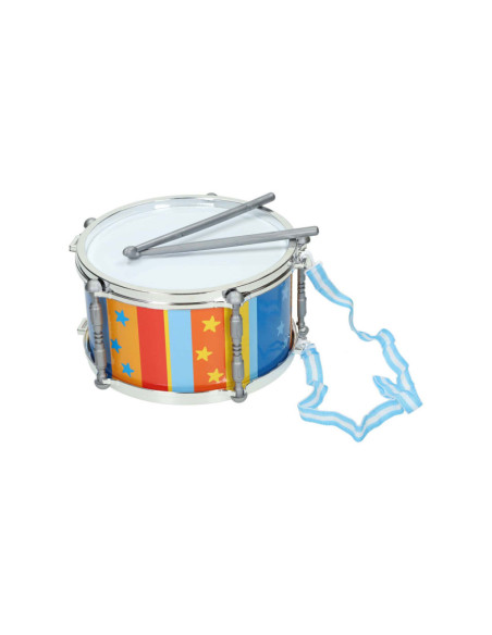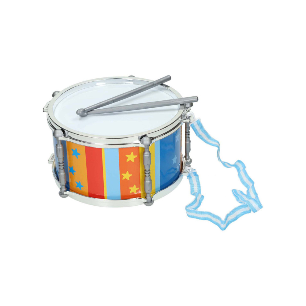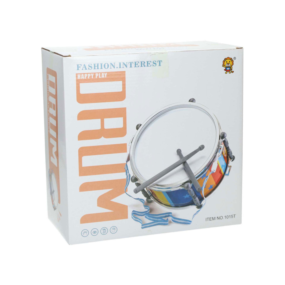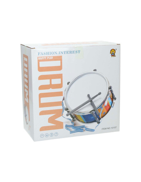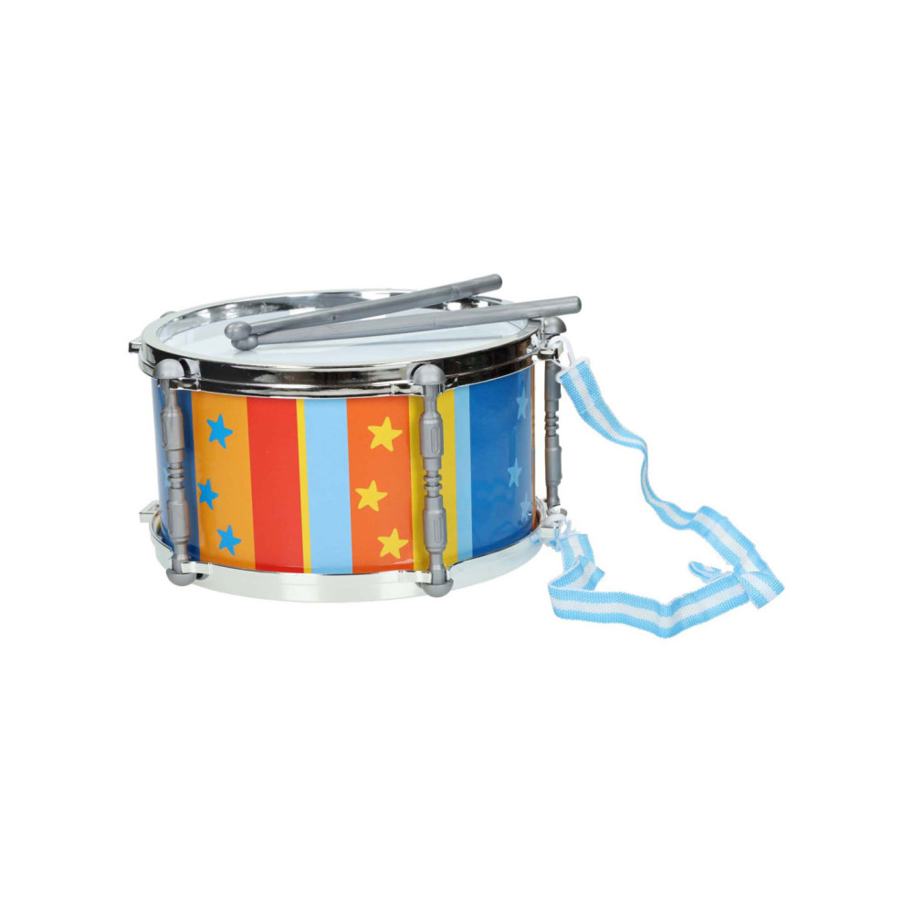 Maak mooie muziek met deze trommel! Zet de trommel neer of hang hem met het koord aan je nek zodat je lopend of staand kunt trommelen. Inclusief 2 drumstokjes. Afmeting trommel: diameter 25 centimeter met hoogte 14 centimeter.