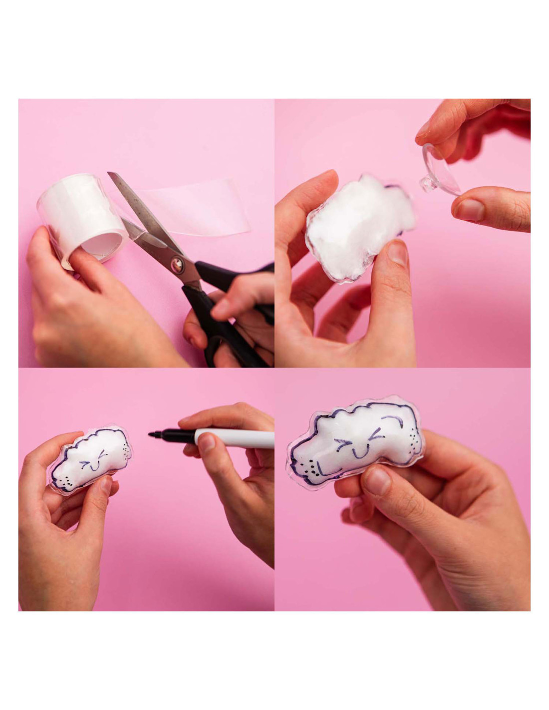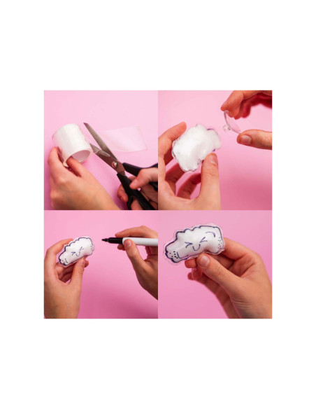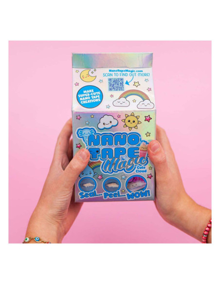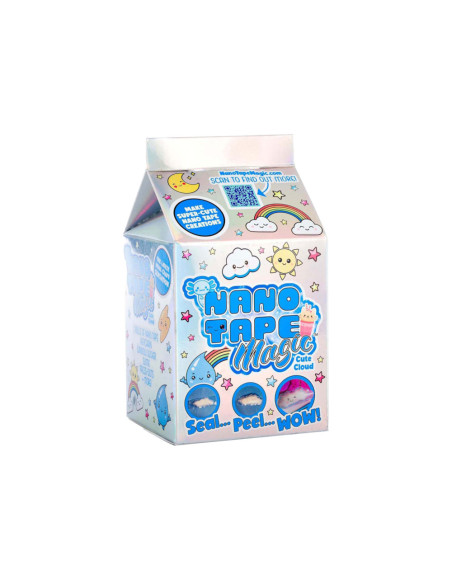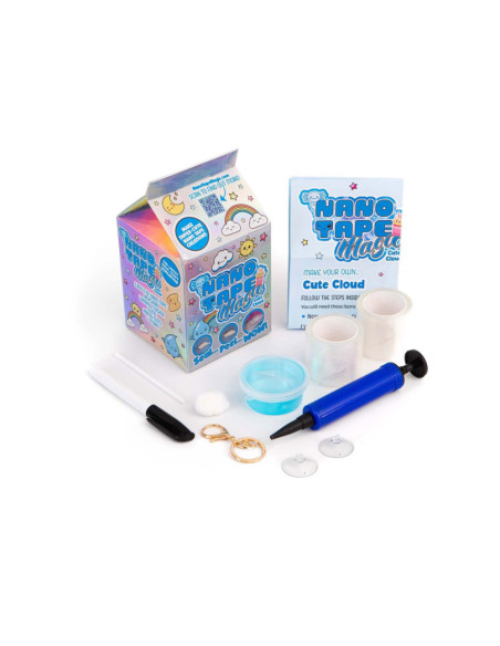 Het is tijd voor magie met Nano Tape Magic! Probeer nu zelf de virale knutseltrend! Deze leuke Cute Cloud knutselset bevat alles wat je nodig hebt om 3 superleuke nano tape creaties te maken. Maak je eigen magische ontwerpen: een schattige wolkensleutelhanger, magische regendruppelsquishies en een regenboog raamontwerp.Volg de stappen om het nanotapeproject te maken en scan vervolgens de QR-code in de verpakking voor nog veel meer tips, trucs, video's en eenvoudig te volgen instructies voor betoverende nanotape knutselwerkjes. Van superleuke stickers en slijmerige squishies tot bubbelhuisdieren en tasbedels, deze veelzijdige tape kan worden gebruikt om allerlei leuke creaties te maken. Knip, plak, voeg toe, blaas of pomp en zie hoe je nanotape creatie tot leven komt! Deze Cute Cloud set bevat: 2 rollen nanotape, 1 nanotape-pomp, 1 viltstift, 1 plastic rietje, 1 pot slijm, 1 wattenbol, 1 sleutelhanger, 2 sheets met uitdrukbare plaatjes, 1 raam zuignap.Het werken met nanotape vergt wat oefening, maar maak je geen zorgen als je het niet meteen goed doet �?? het hoort allemaal bij de pret en uiteindelijk zal het resultaat je verbluffen! Leeftijdsindicatie: 6 jaar+.