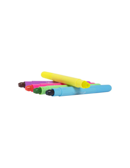 • Gemakkelijk Schoon te Maken: De gelkrijtjes zijn afwasbaar van de meeste oppervlakken, waardoor opruimen eenvoudig is. Ideaal voor zorgeloos tekenen en kleuren.