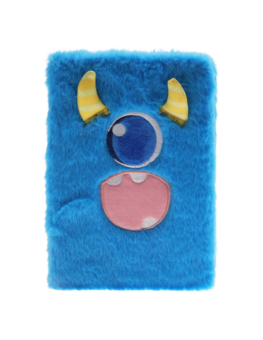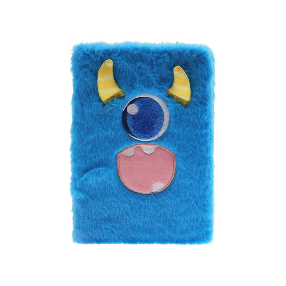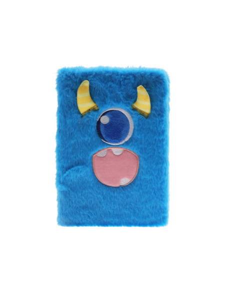 Notitieboek pluche met monstergezicht. Afmetingen: 15,5 x 22 centiemter groot.