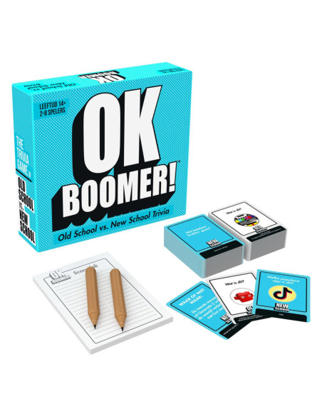 In dit trivia spel nemen de jongeren het tegen de oude rotten op! Test je kennis van de populaire cultuur van de generatie van je tegenstander. Je speelt in teams op basis van generatie. En als de spelers ongeveer dezelfde leeftijd hebben, is het een kwestie van iedereen voor zich! Inclusief 220 kaarten met vier soorten vragen, zodat je telkens opnieuw kunt spelen.