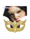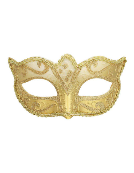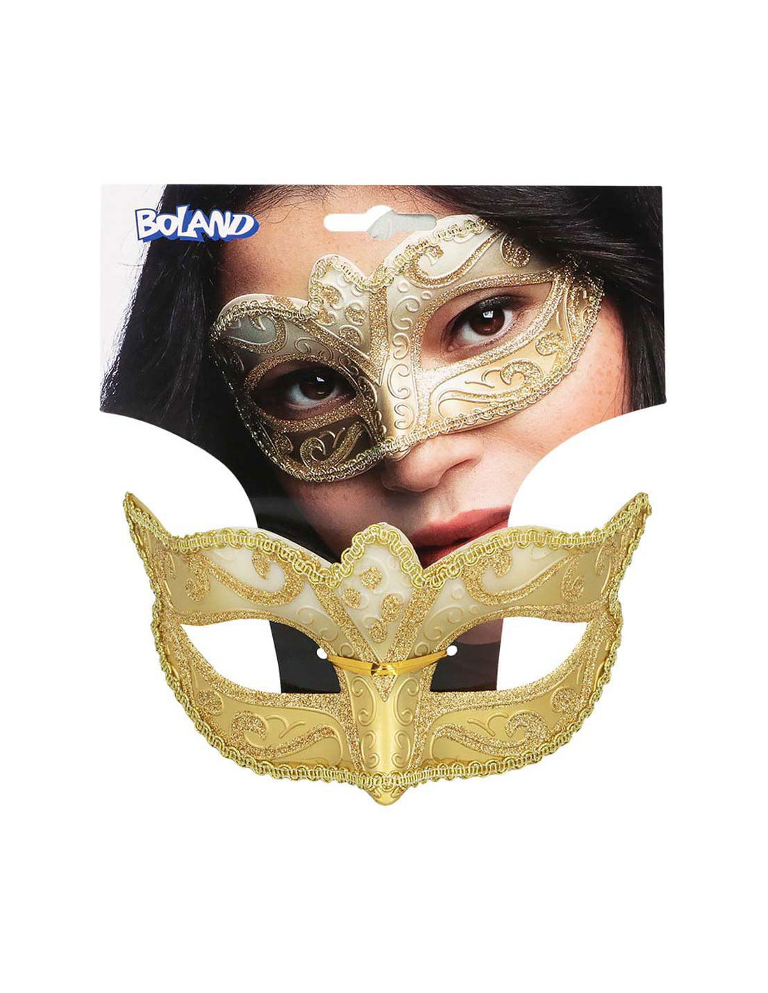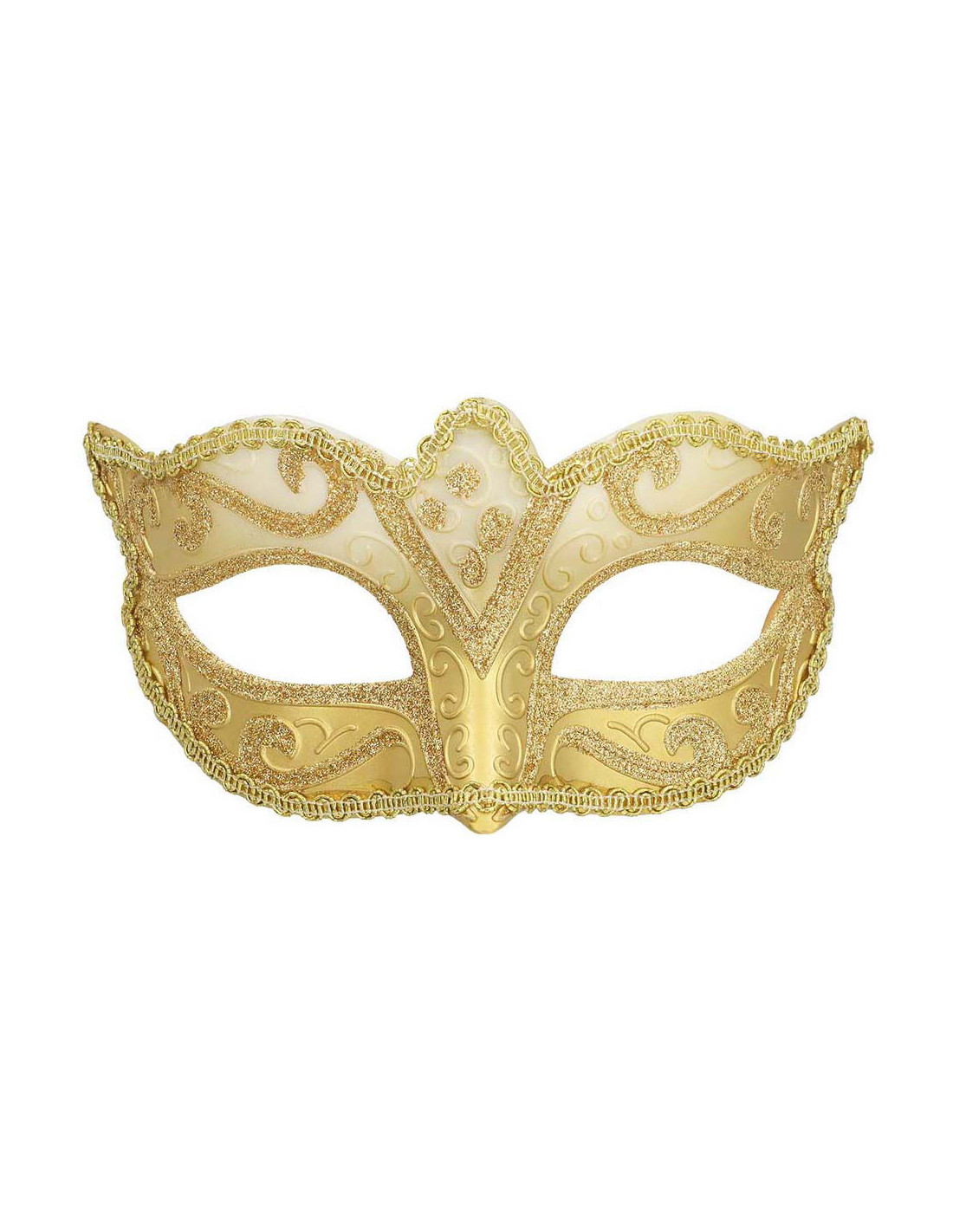 Venetiaans oogmasker in de kleur goud. Afmetingen: 15 x 8 centimeter. Geschikt voor volwassenen.