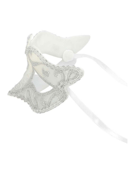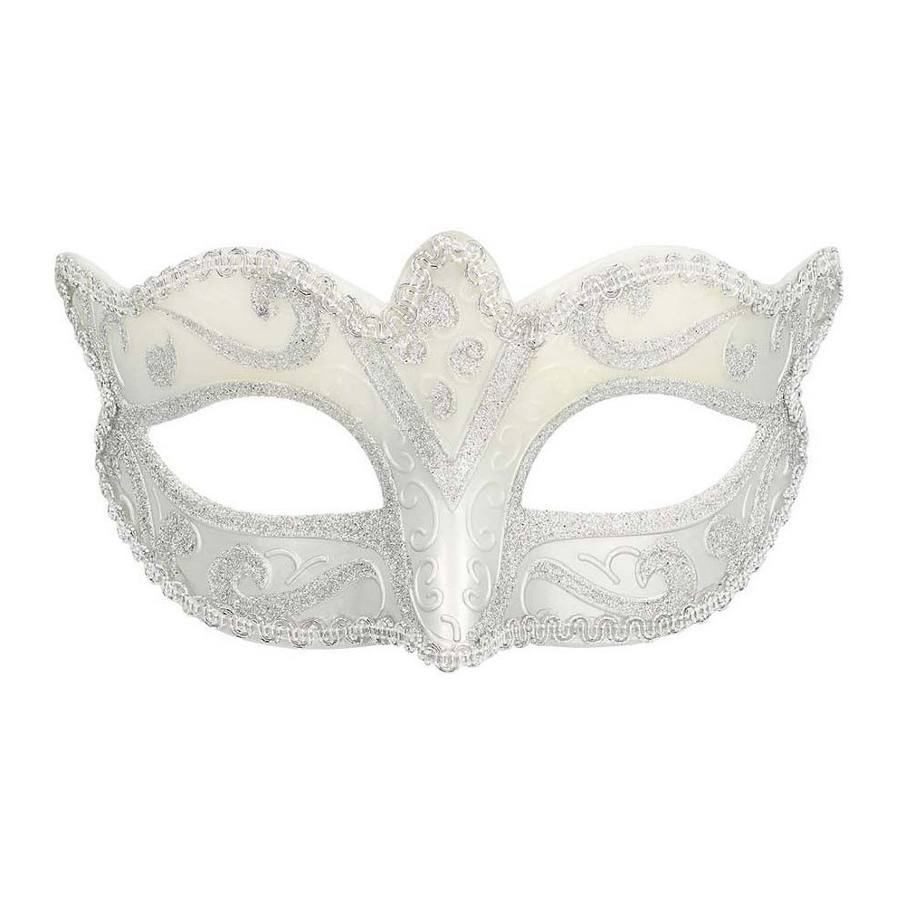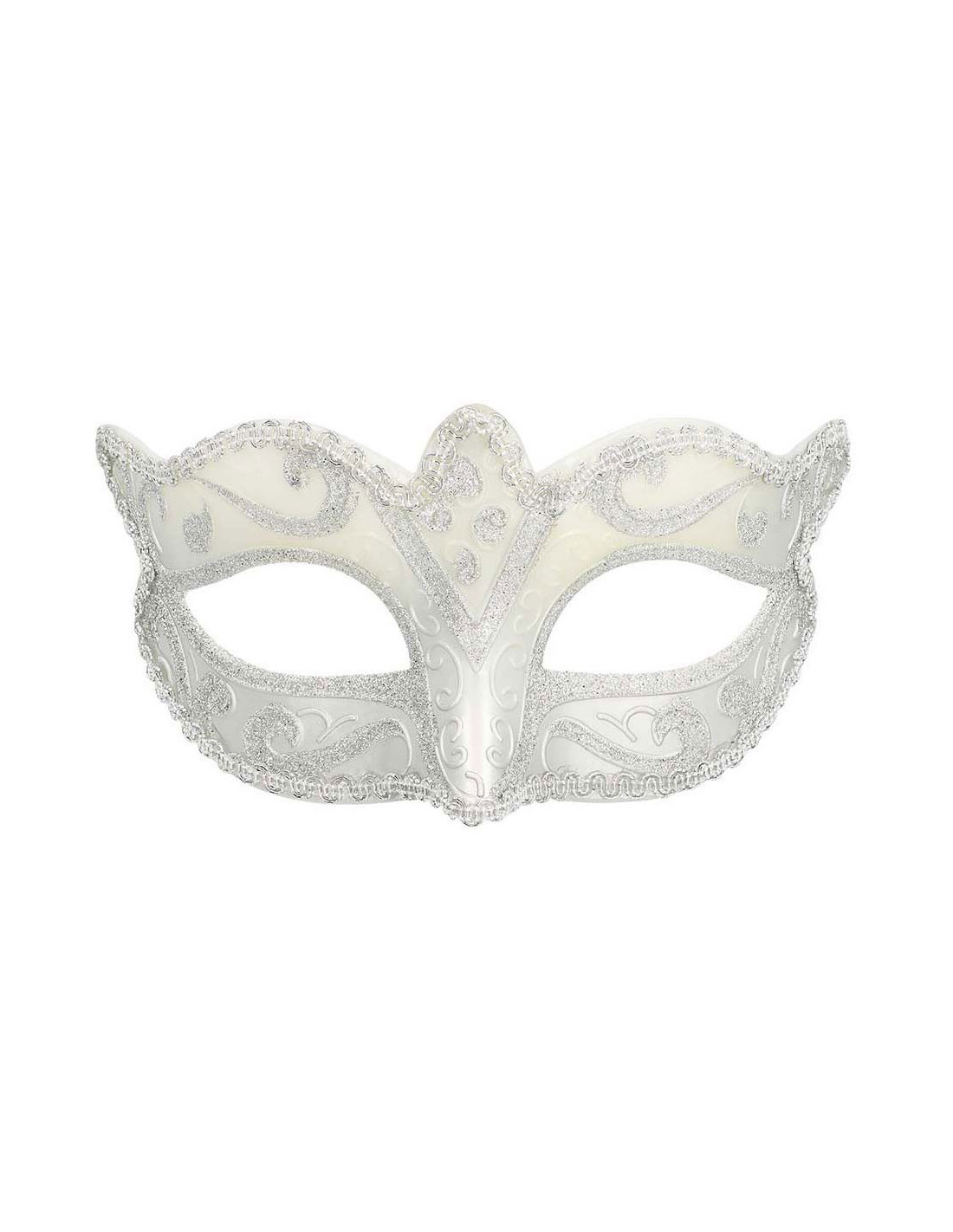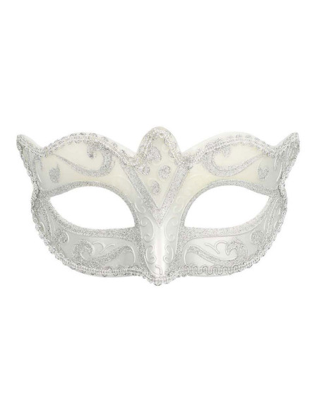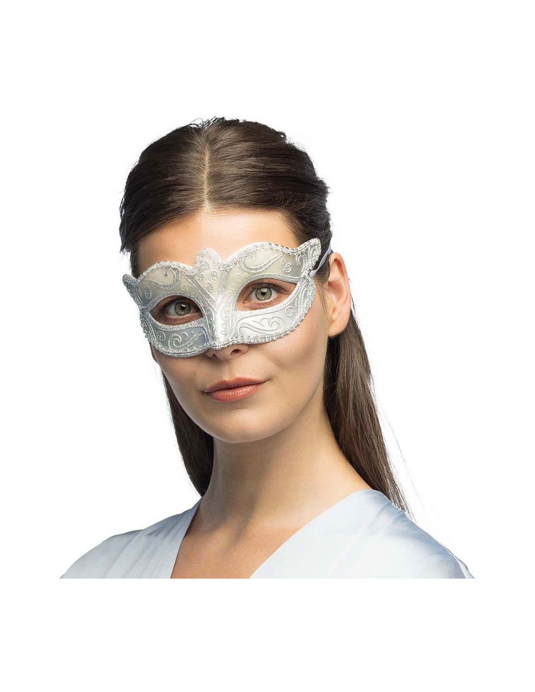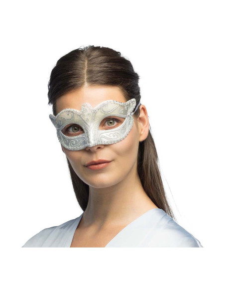 Venetiaans oogmasker in de kleur zilver. Afmetingen: 15 x 8 centimeter. Geschikt voor volwassenen.