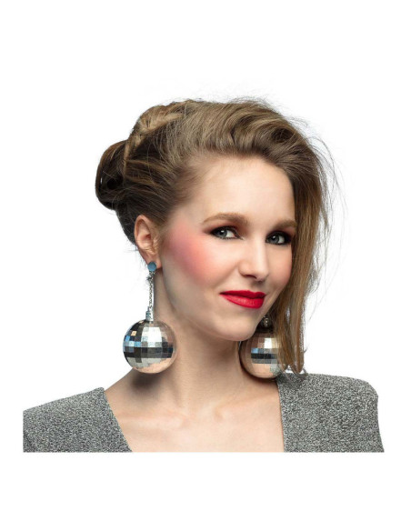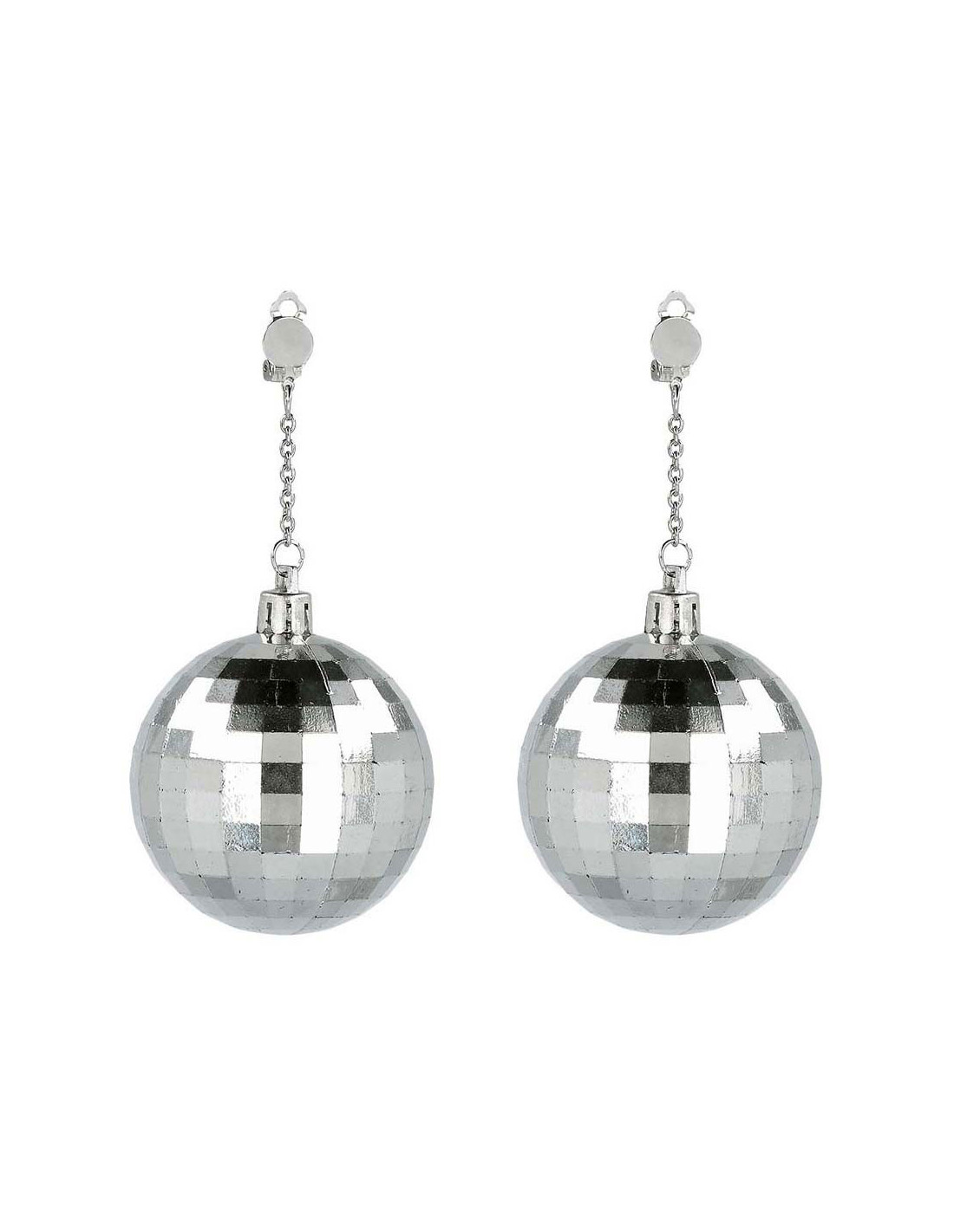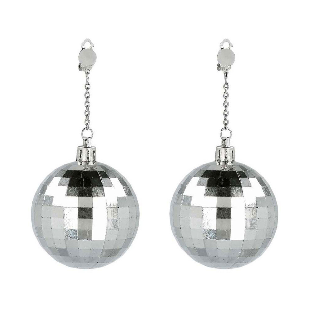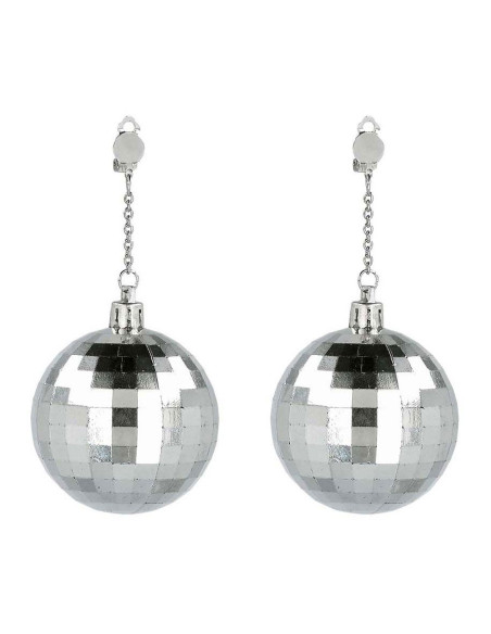 Zilverkleurige discobal oorbellen van kunststof met clipsluiting.​ Let op: niet geschikt voor kinderen onder de 14 jaar.