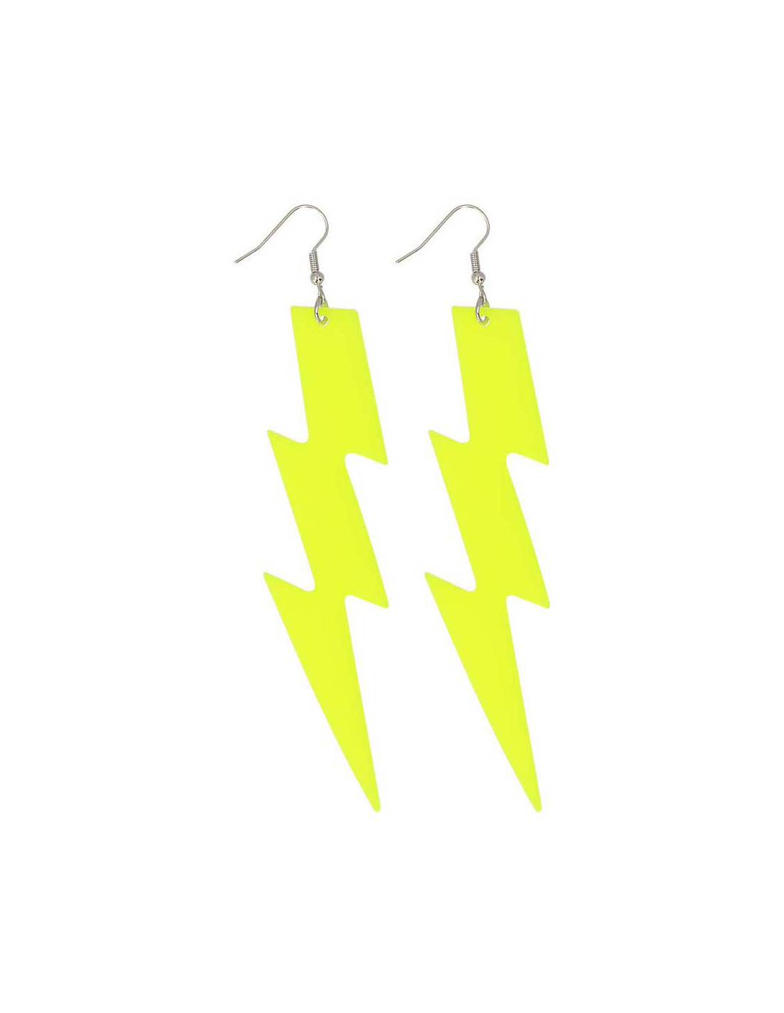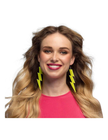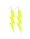 Neon gele bliksemschicht-oorbellen van kunststof met oorhaaksluiting. Geschikt vanaf 14 jaar.
