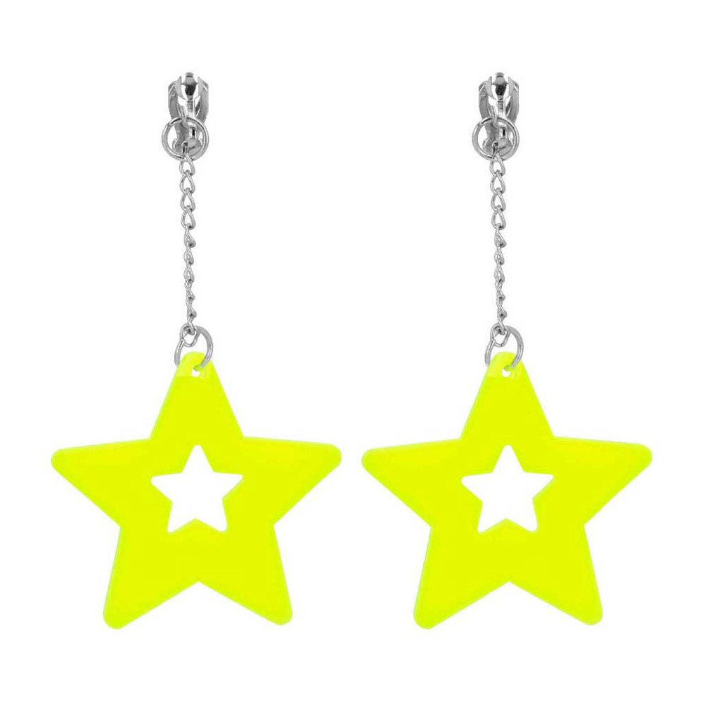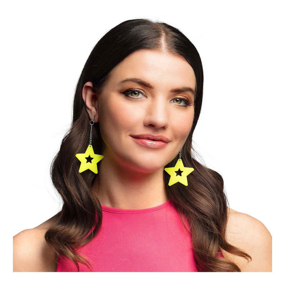 Deze opvallende oorbellen zijn de perfecte accessoire voor een 80's en 90's retro outfit. De fel gele neonkleur en het speelse ster design maken dit sieraad ideaal voor een funky old school kostuum voor een fout feest, Carnaval of themafeest.