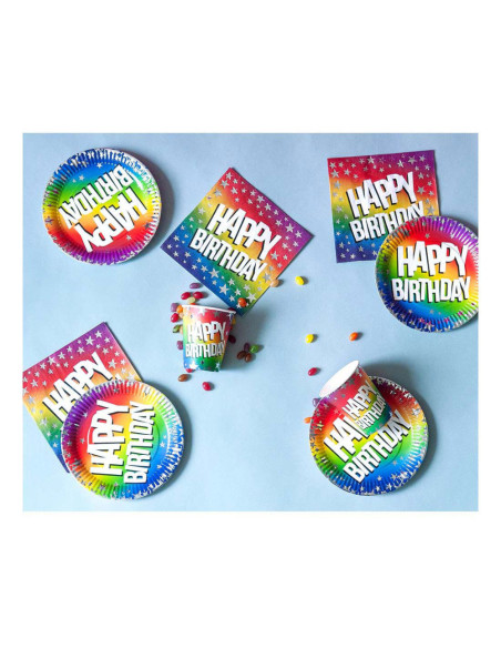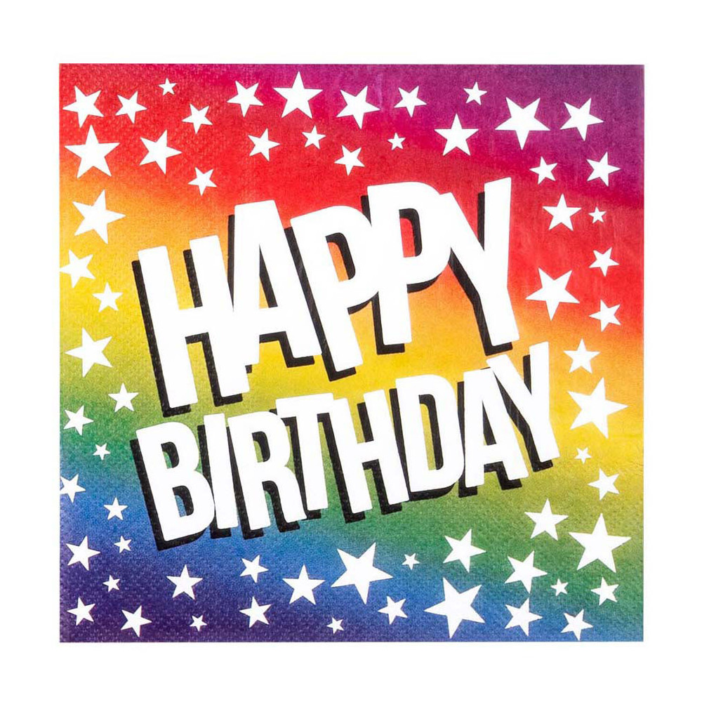 Set van 20 papieren 'Happy Birthday' servetten van 33 x 33 cm in multicolor.