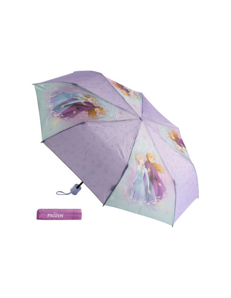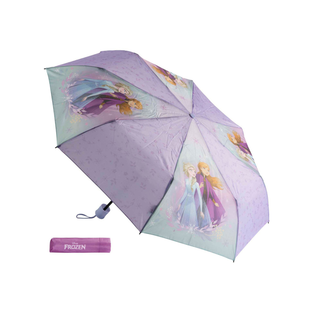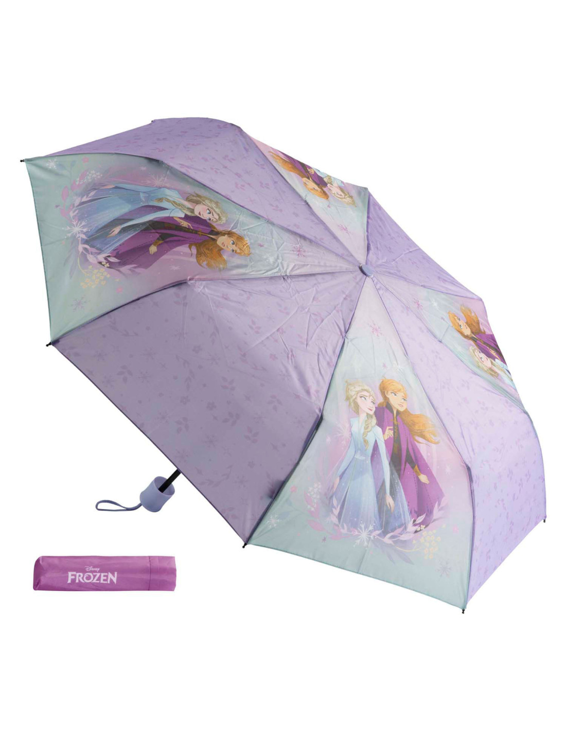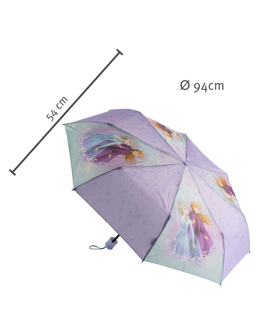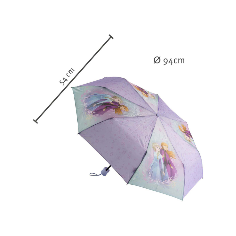 Opvouwbare Frozen paraplu met hoes. De paraplu is uitgevouwen 54 cm lang, met een diameter van 94 cm.
