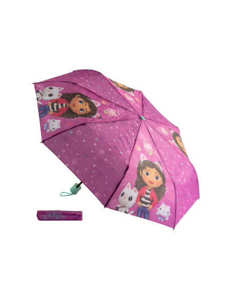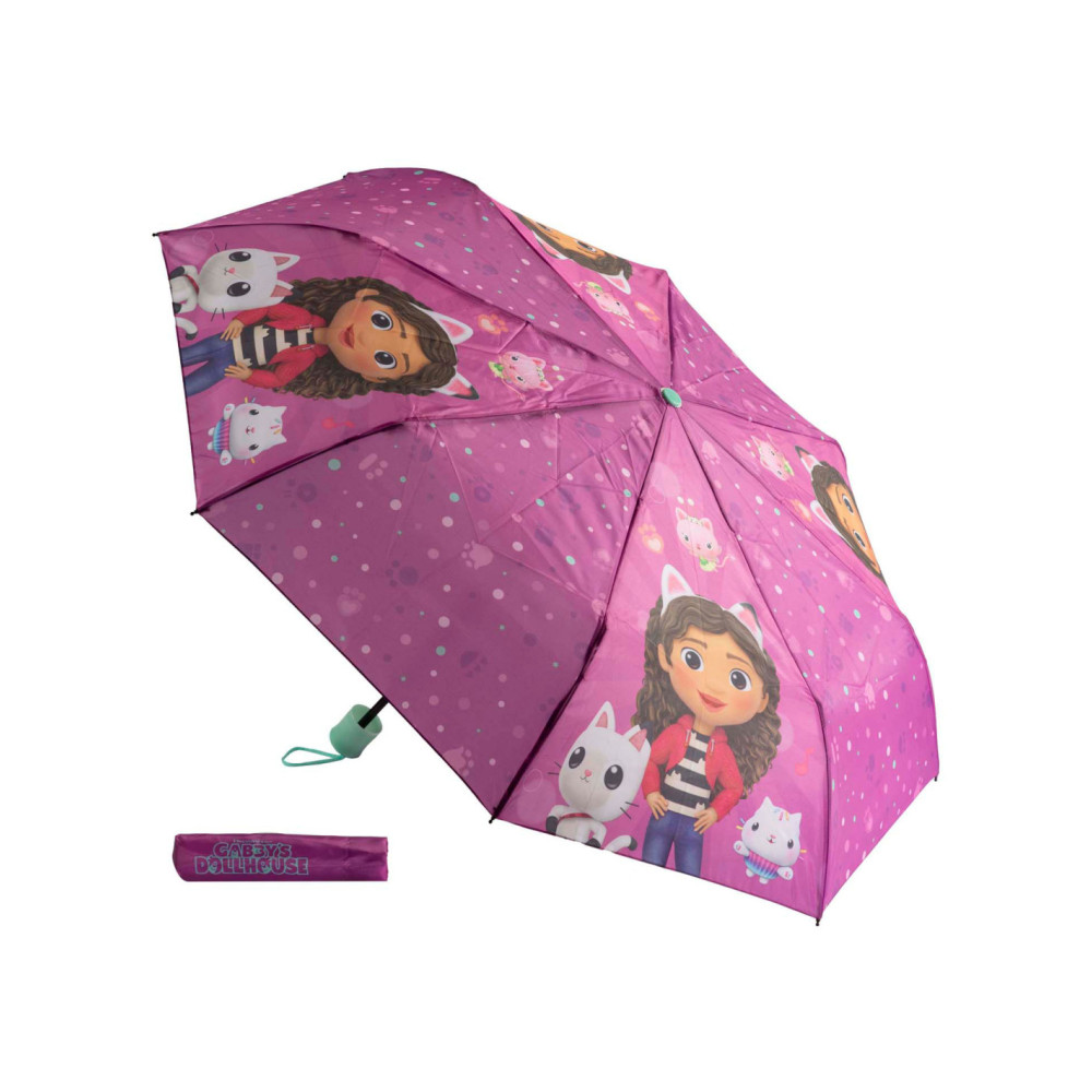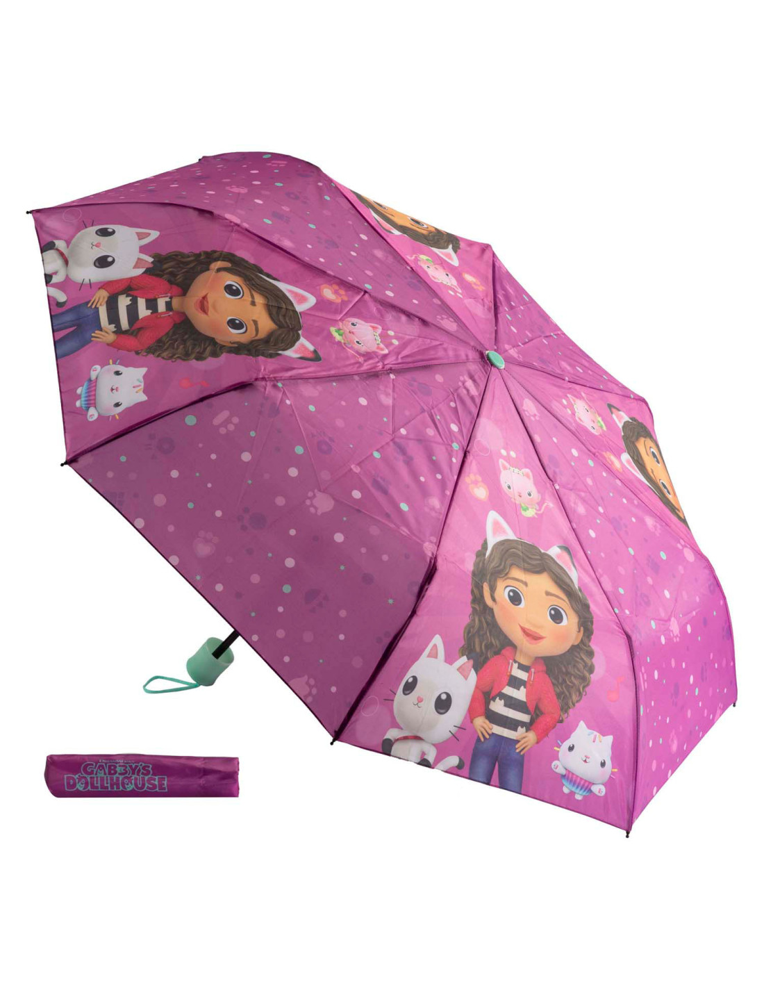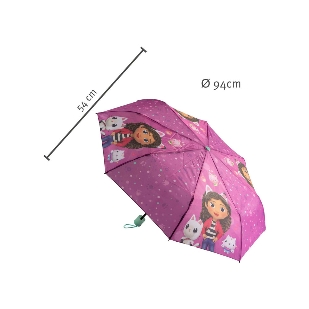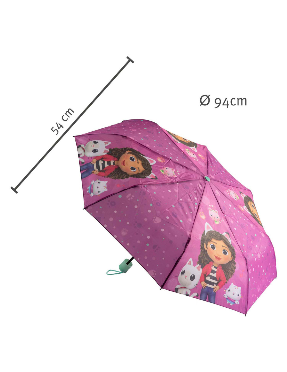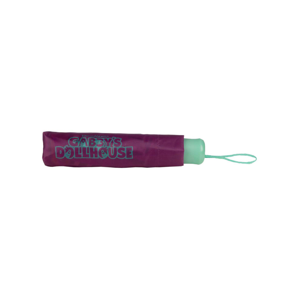 Uitvouwbare Gabby's Poppenhuis paraplu. De paraplu is uitgevouwen 54 cm lang, met een doorsnede van 94 cm.