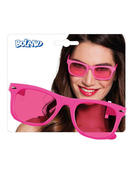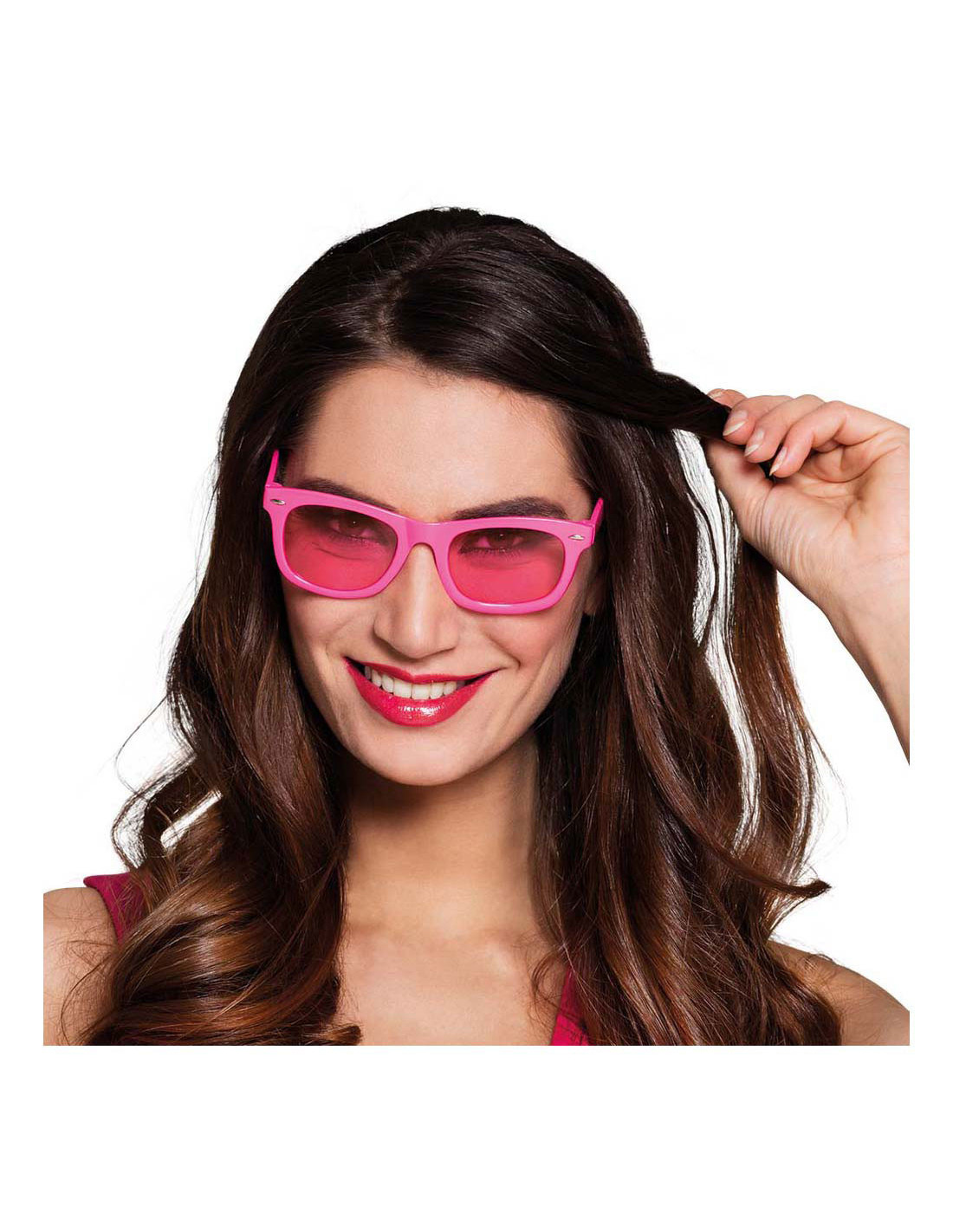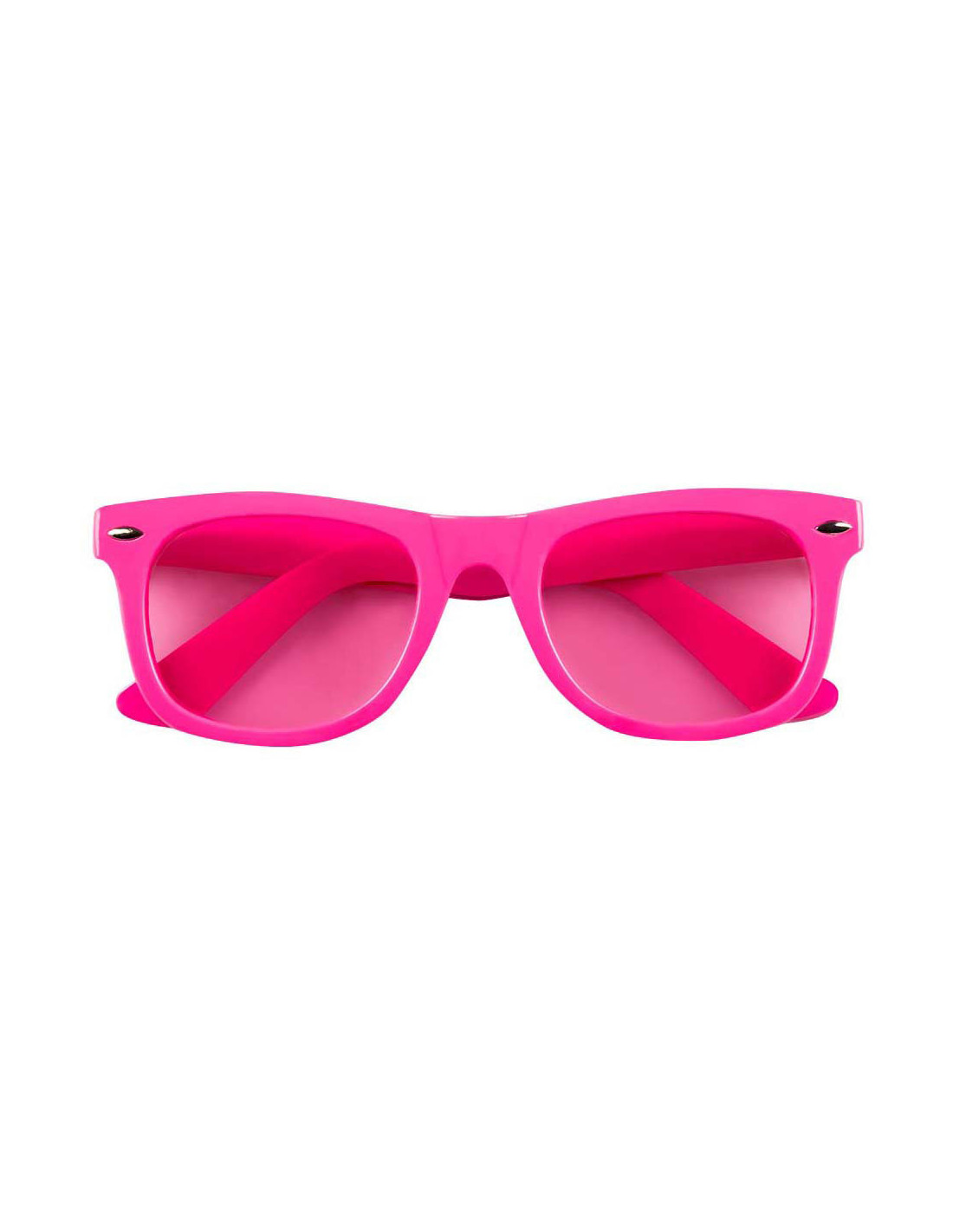 Retro partybril in neonroze kleur met horizontale lamellen. Ideaal voor volwassenen die opvallen op feesten of thema-evenementen. Gemaakt van kunststof voor een lichtgewicht en comfortabele pasvorm.