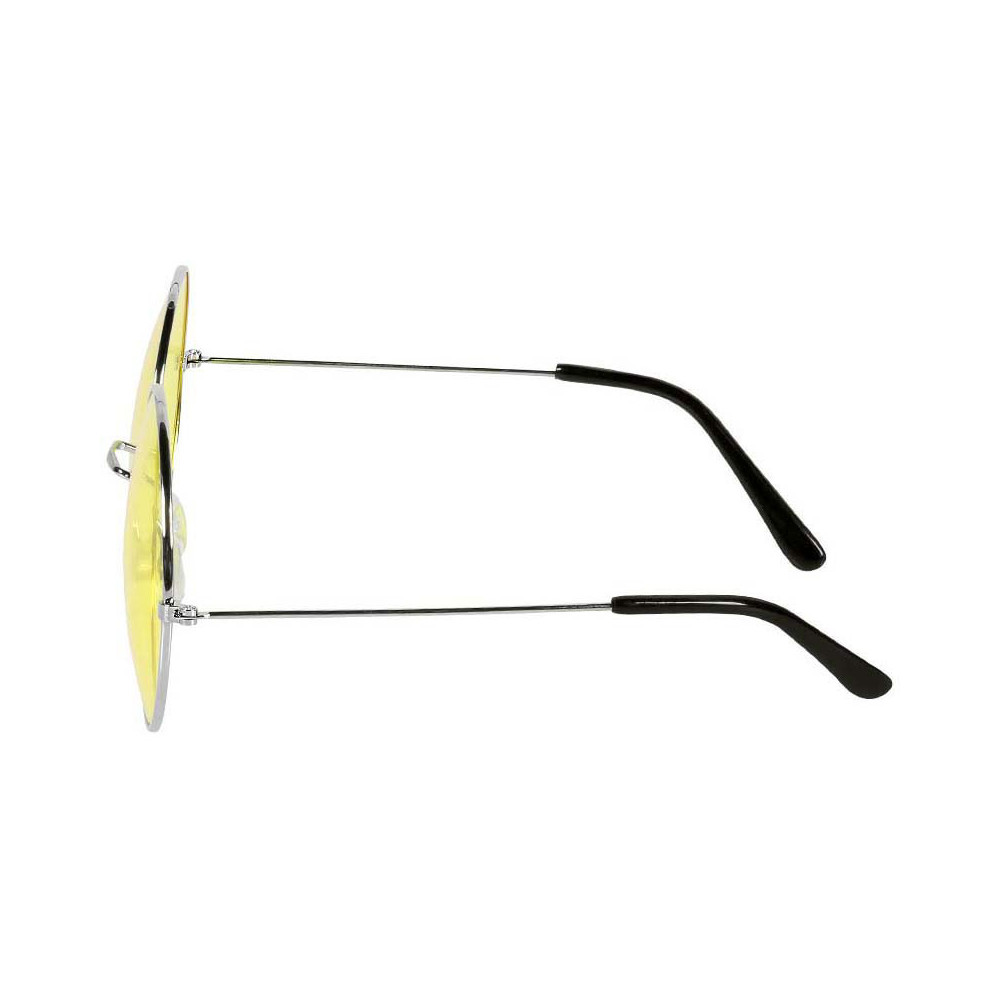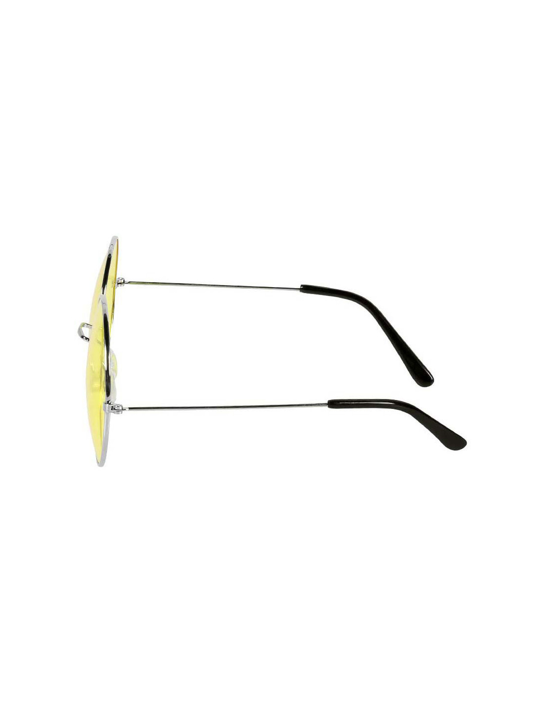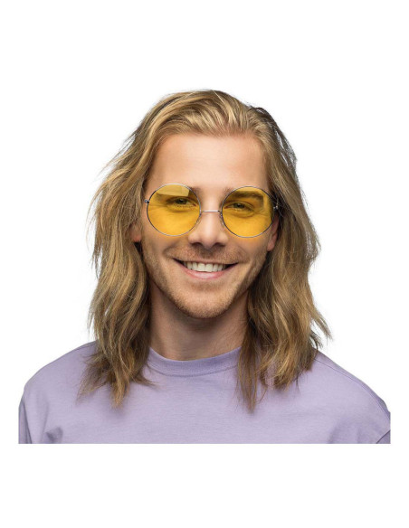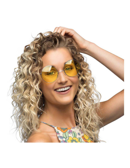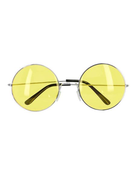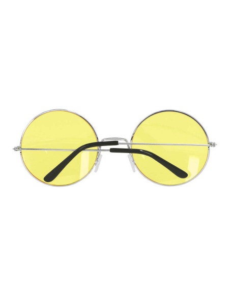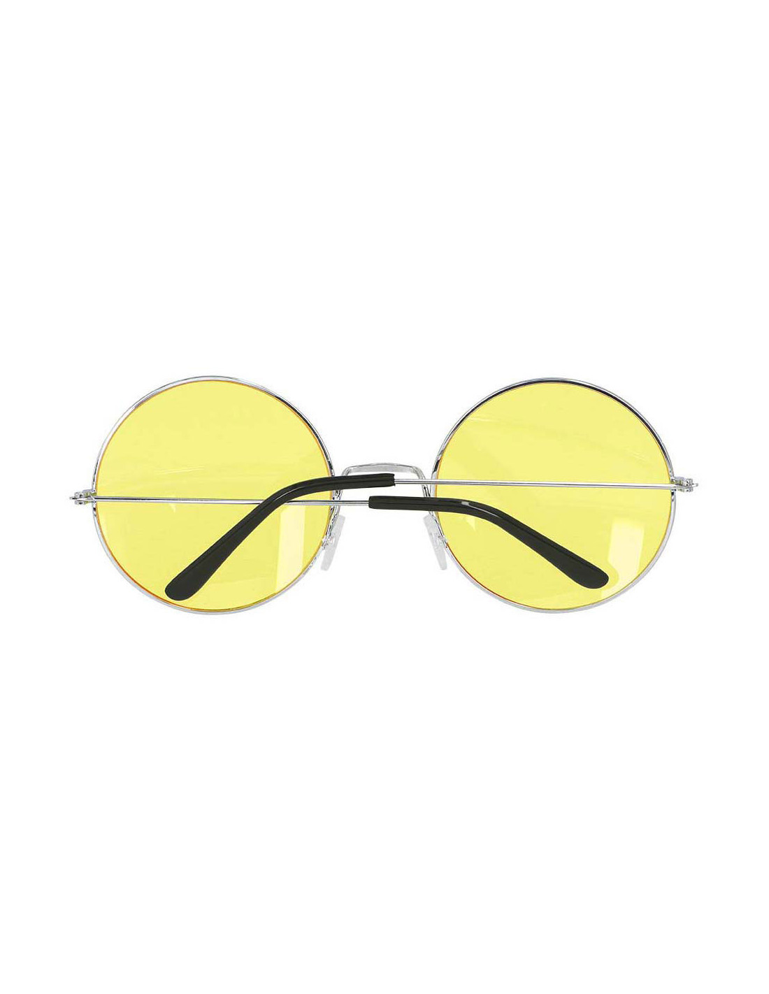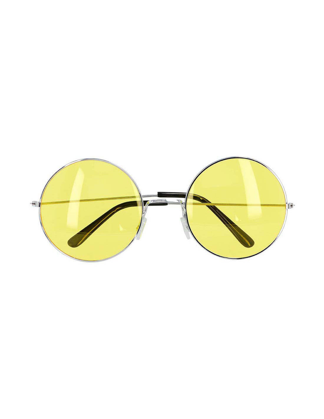 Bekijk de wereld door een gele bril met grote ronde glazen en voel je een hippie uit de jaren 60. Het perfecte accessoire voor vrije festivalgangers en feestbeesten dat de flower power vibe van de 60's en 70's toevoegt aan elke festival outfit of retro carnaval of themafeest kostuum.