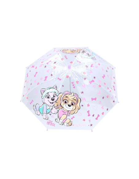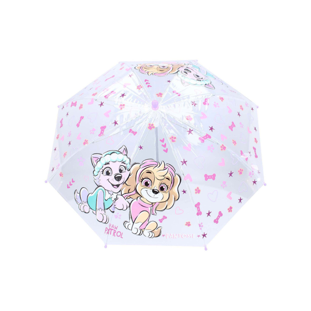 Maak kennis met de paraplu van Paw Patrol uit de "Rainy Days" collectie! Deze transparante paraplu is een droom voor elke jonge Paw Patrol-fan die dol is op Skye, Everest en de andere meiden uit de serie. Het transparante ontwerp geeft kinderen een helder zicht op hun omgeving, terwijl de stevige constructie ervoor zorgt dat de paraplu bestand is tegen winderig weer. De paarse accenten voegen een vrolijke kleur toe, en de plaatjes van de Paw Patrol-meiden maken het een eyecatcher voor kinderen en hun ouders. Voeg deze paraplu van Paw Patrol uit de "Rainy Days" collectie toe aan je assortiment en bied je klanten een leuk en praktisch product dat kinderen droog en tevreden houdt. Of het nu gaat om een regenachtige schooldag, een wandeling met het gezin, of een dagje naar de dierentuin, deze paraplu is een stijlvolle metgezel voor jonge avonturiers. Voeg een vleugje Paw Patrol-magie toe aan je winkel en laat je klanten genieten van regenachtige dagen met deze charmante en functionele paraplu.