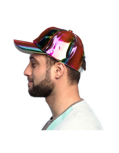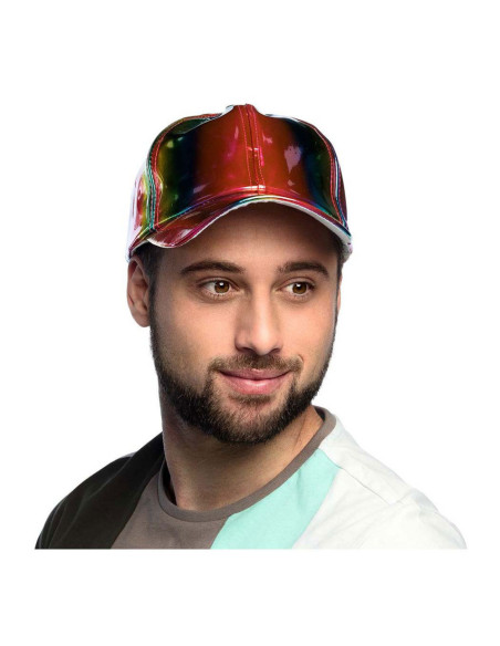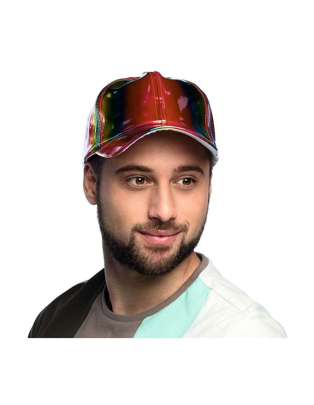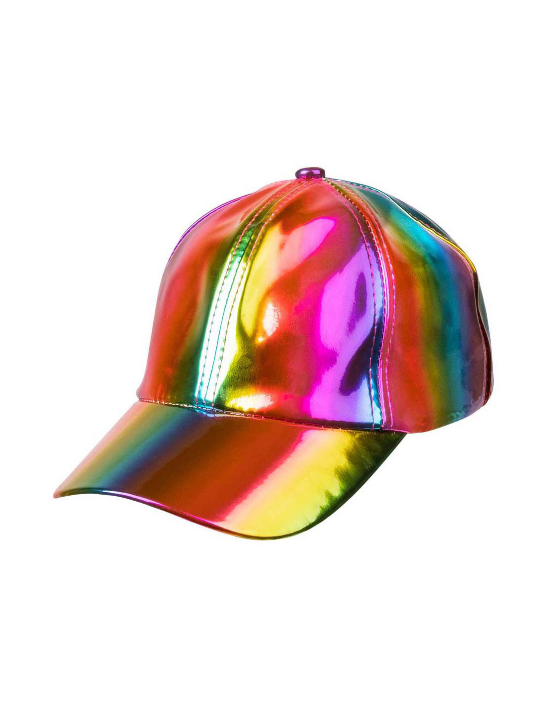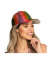 Holografische regenboogpet van Boland, gemaakt van diverse materialen en voorzien van een verstelbare band. Hoofdomtrek circa 59 cm. Geschikt vanaf 14 jaar.