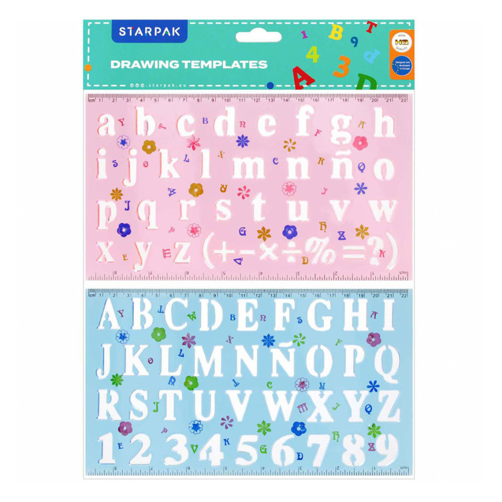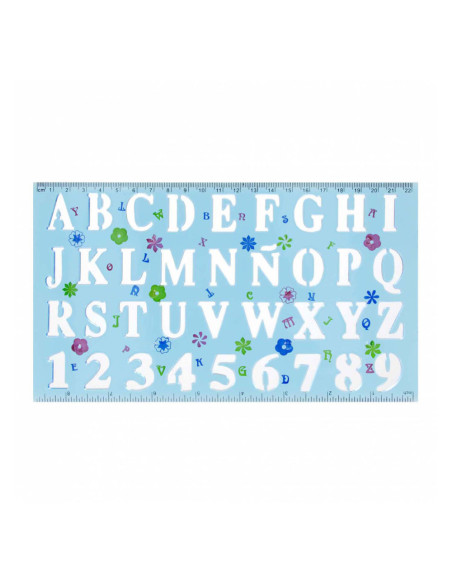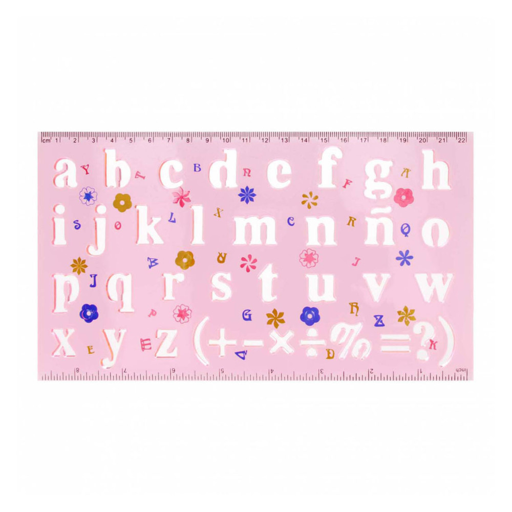Plastic letters en nummers sjablonen, inclusief liniaal van 22 cm.