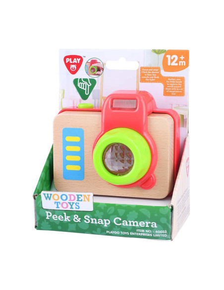 Houten speelgoedcamera. Geschikt voor kinderen vanaf 12 maanden.