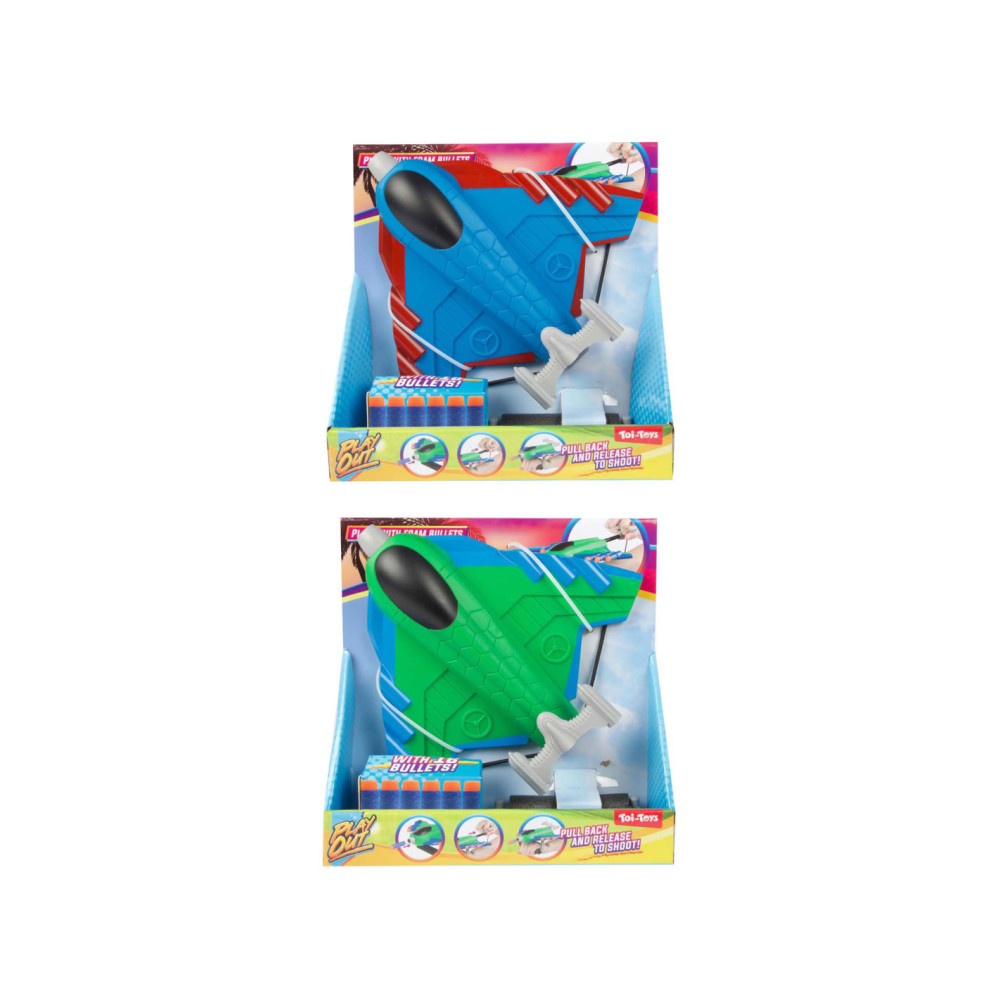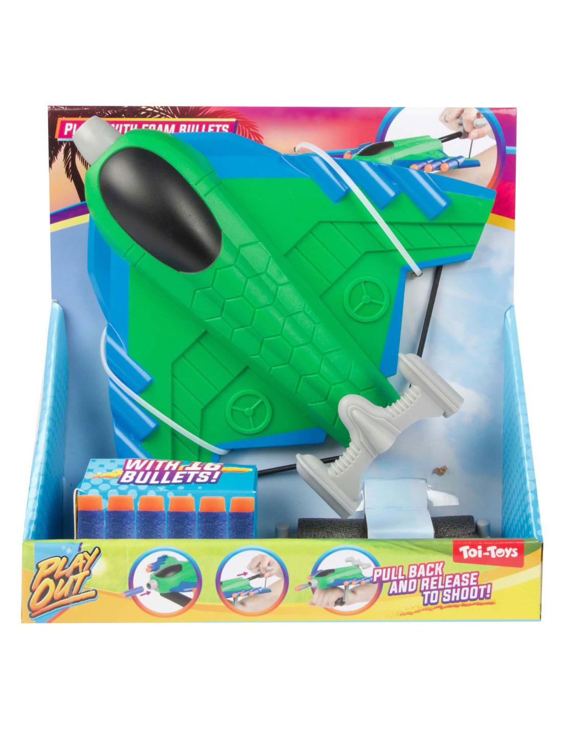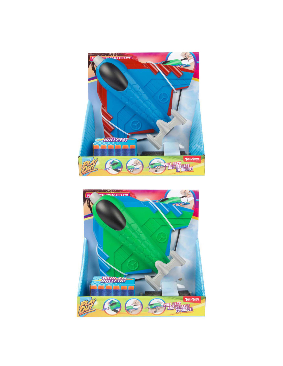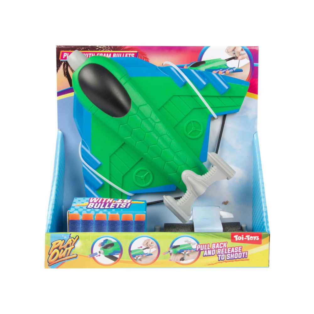 PLAY OUT Vliegtuig shooter met 16 foampijlen. Afmetingen: ca. 22 centimeter.