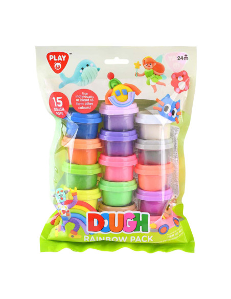 Set van 15 kleine kleipotjes met verschillende kleuren klei. Geschikt voor kinderen vanaf 24 maanden.