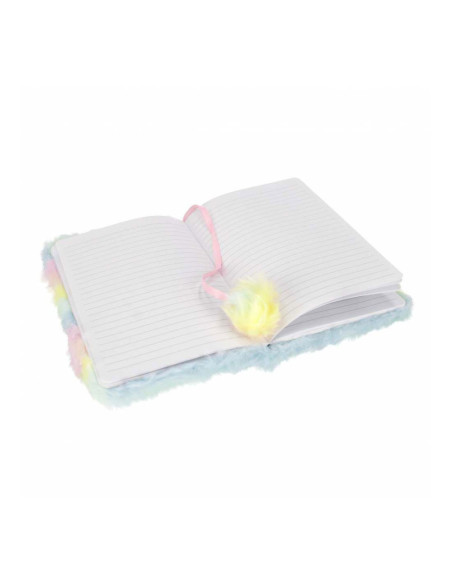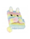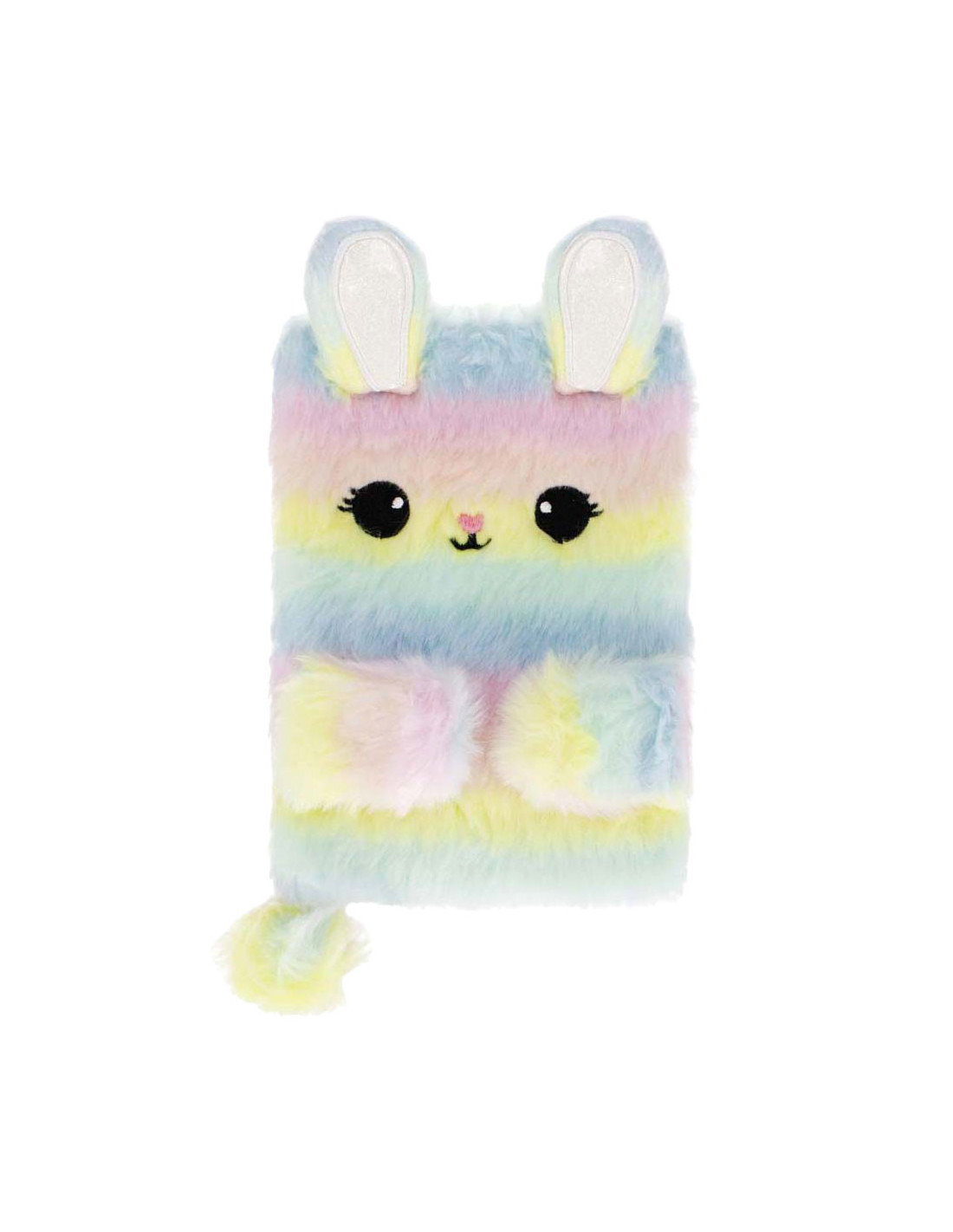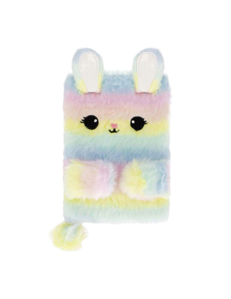 Pluchen Notitieboek Konijn Pastelkleurig op A5-formaat met een pluizige pompom als bladwijzer.