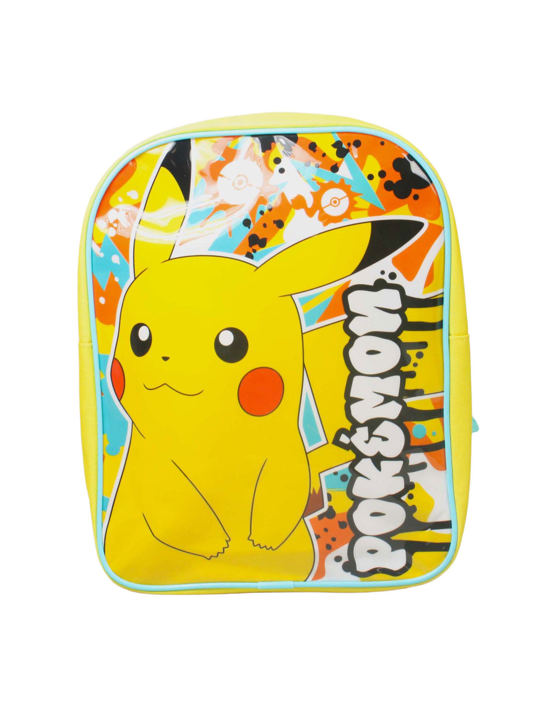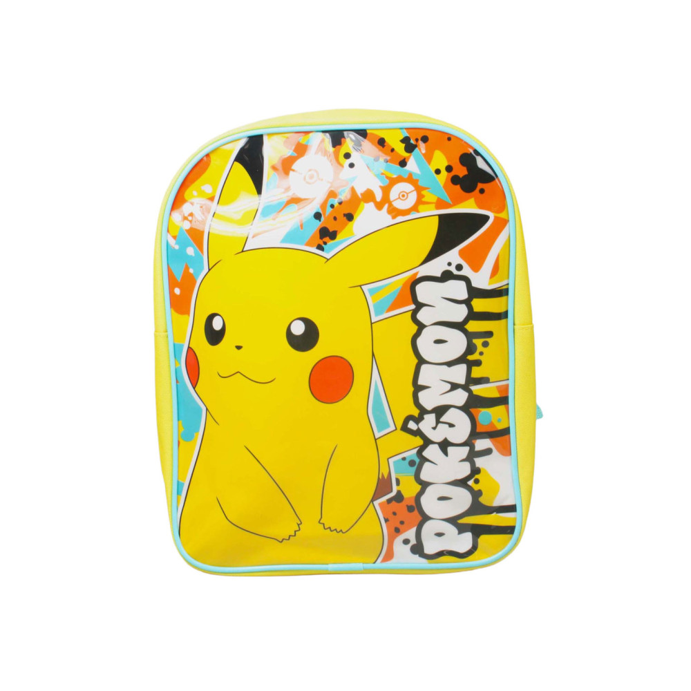 Gele Pokémon rugtas met afbeelding van Pikachu. Afmetingen: 10x28x34 cm.