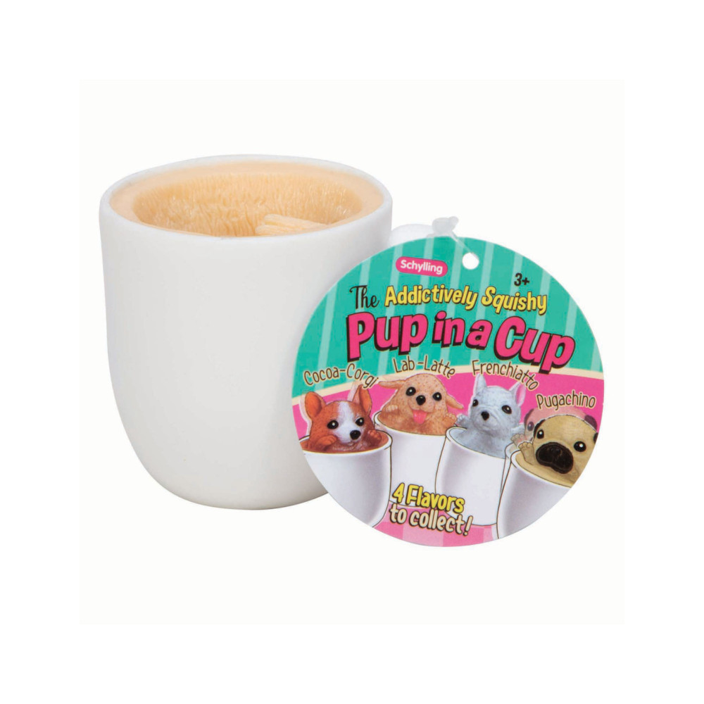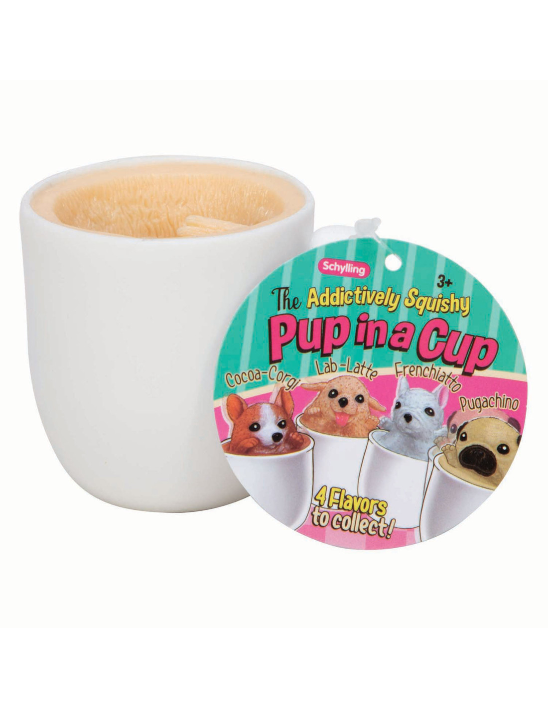Schylling's Pup in a Cup is jouw nieuwe squishy en stijlvolle metgezel! Deze onweerstaanbaar zachte en rekbare espresso cups lijken op je favoriete koffiedrankje, maar geef ze een kneep en er springt een schattige kleine pup uit!