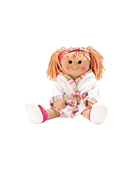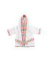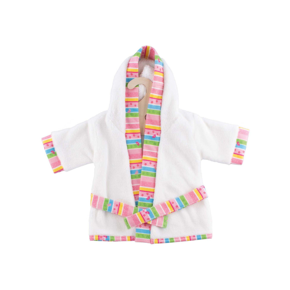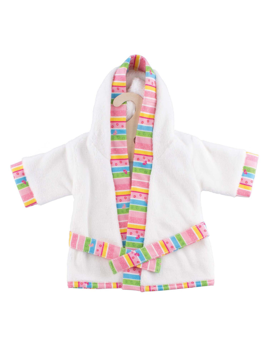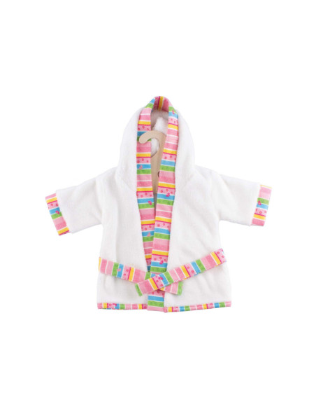Heerlijk zachte poppenbadjas met capuchon en bijpassende ceintuur. Geschikt voor poppen van 35 tot 46 cm.