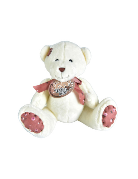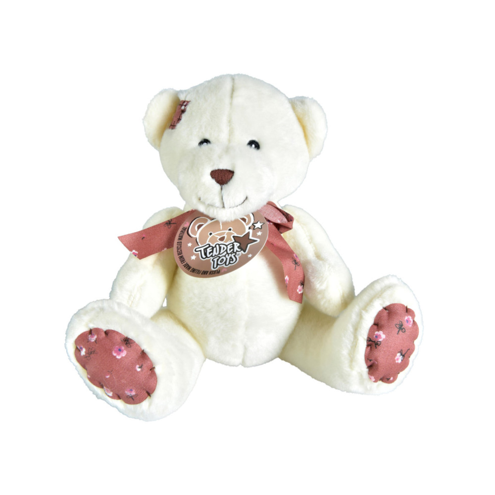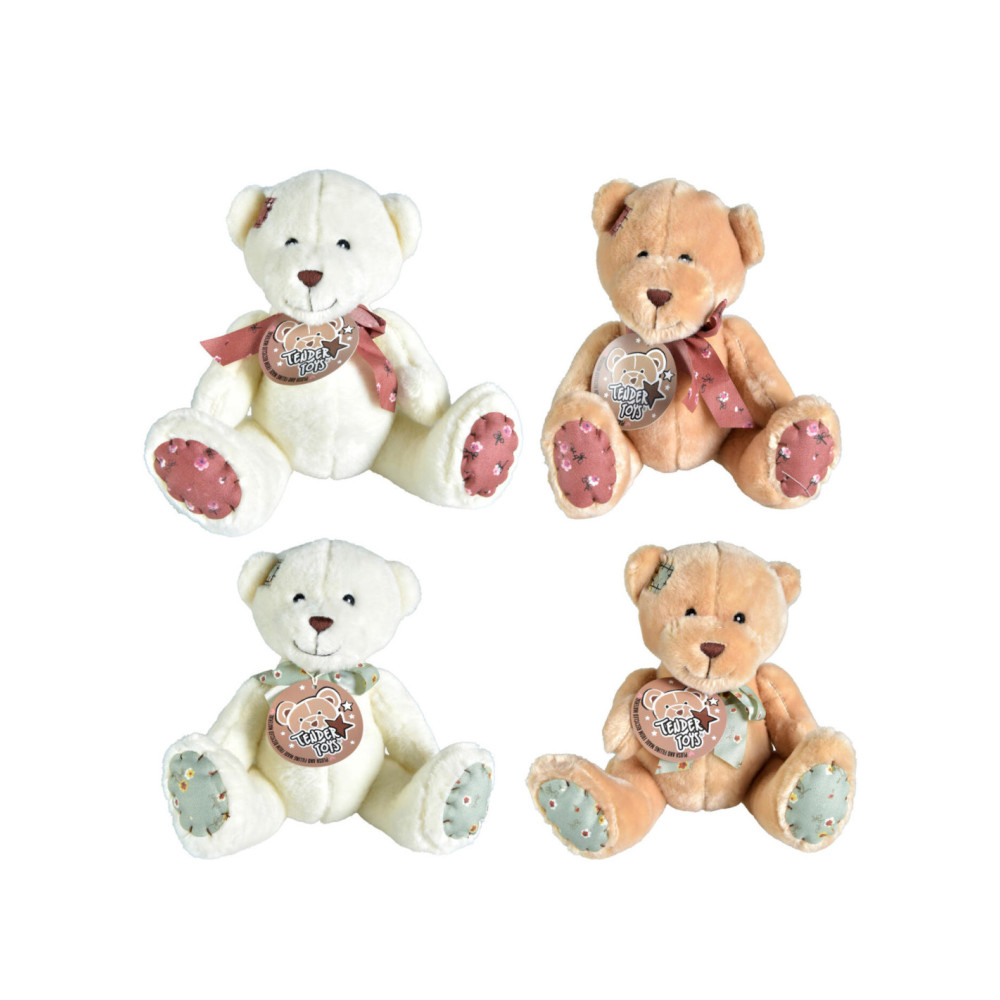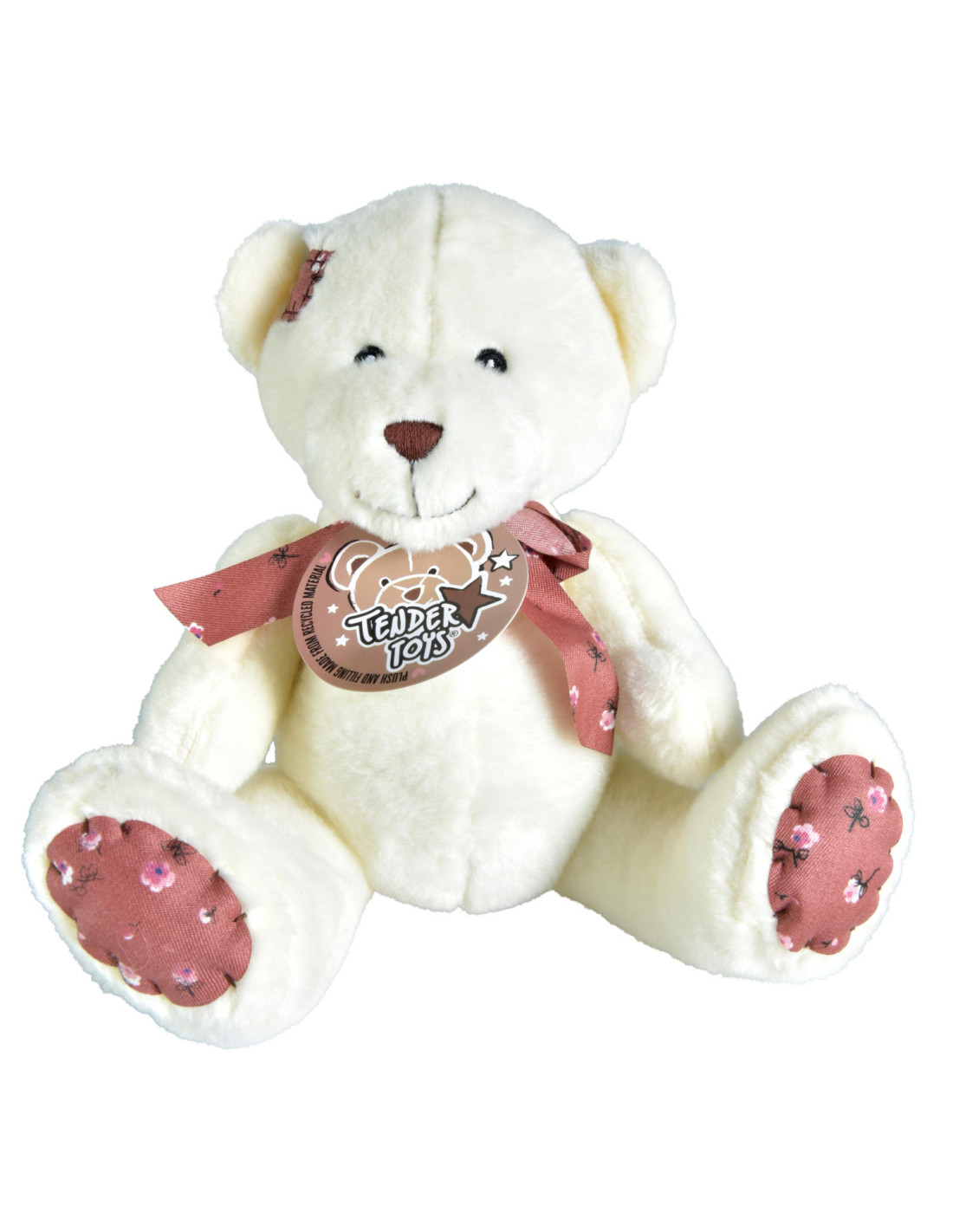 Pluchen beer met strik. Verkrijgbaar in wit en lichtbruin.