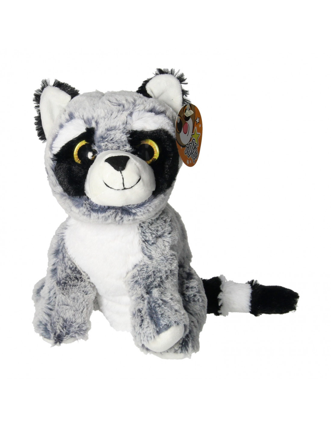 Knuffeldier wasbeer van pluche. De knuffel heeft een lengte van ca. 25 centimeter.