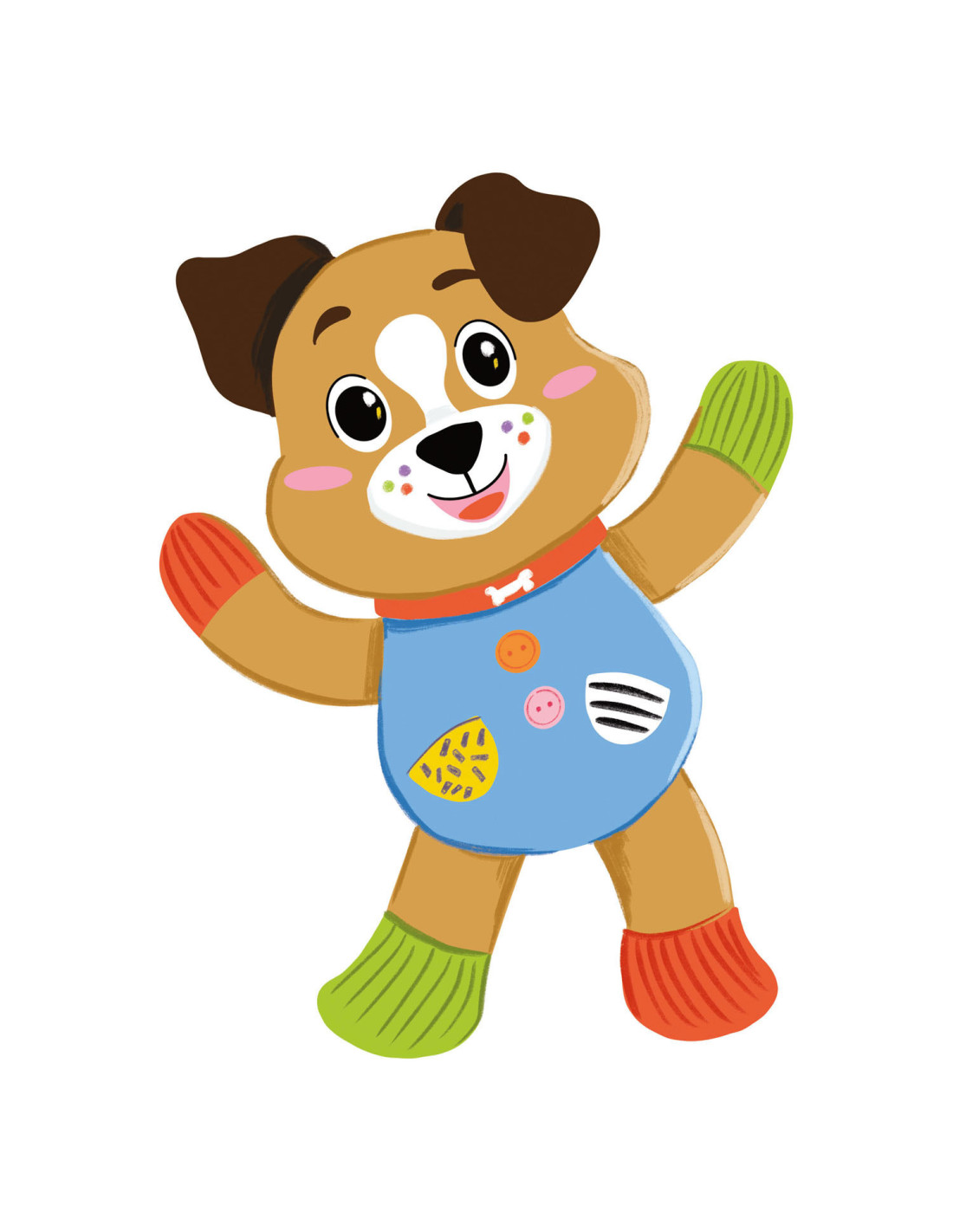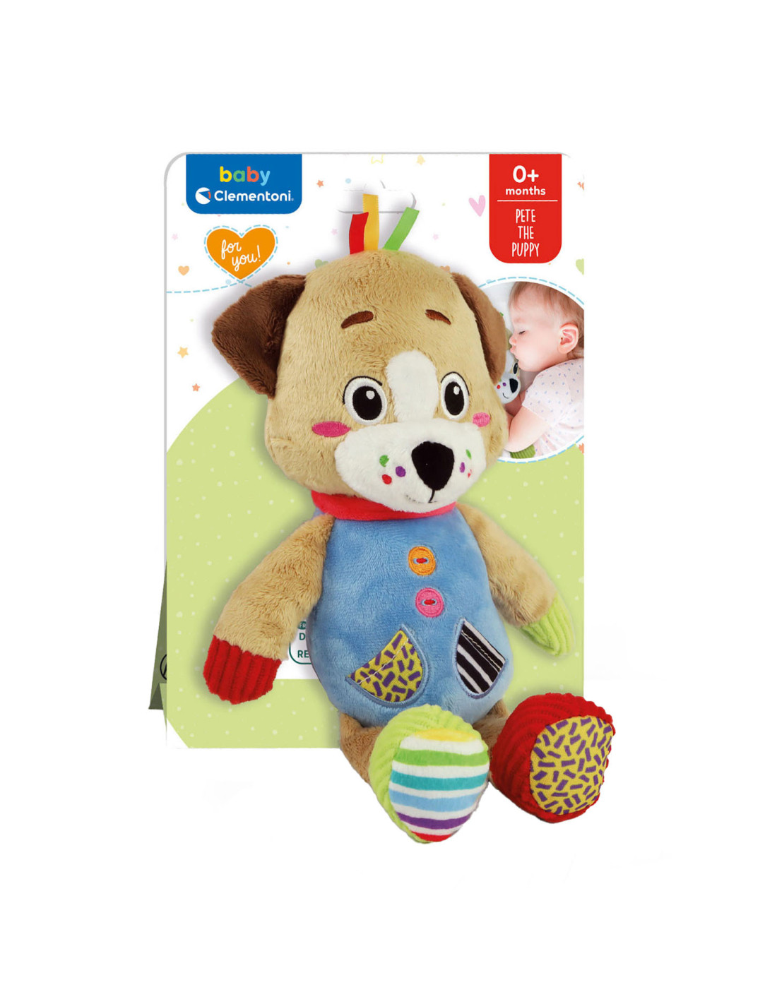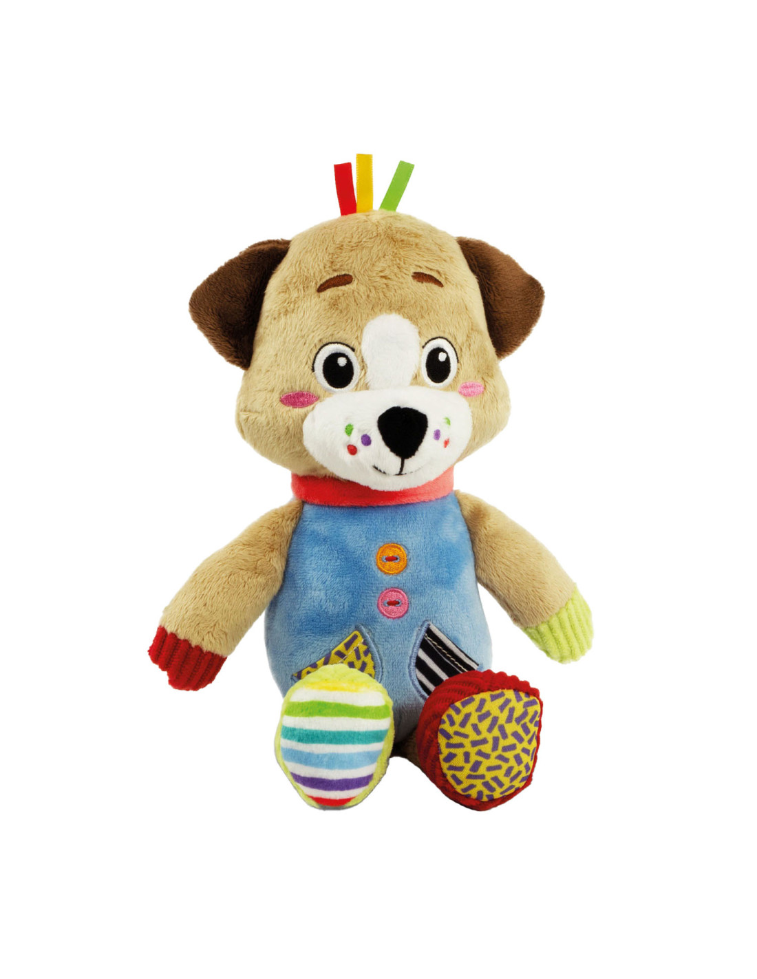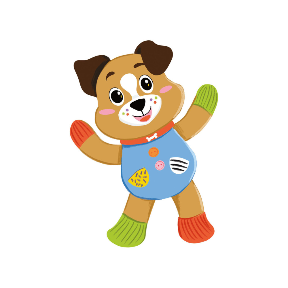 Een heel zacht knuffelhondje, ontworpen voor de allerkleinsten, om ze te laten spelen in een wereld vol zachtheid! De knuffel is gemaakt van verschillende materialen voor de multisensoriële stimulering van het kind en de ontwikkeling van zijn tastzin tijdens de eerste levensfasen. Het perfecte vriendje voor de ontwikkeling van het kind. De zachte knuffel beschikt over een accessoire om op te bijten, ontworpen voor baby's die tandjes krijgen. Machinewasbaar.