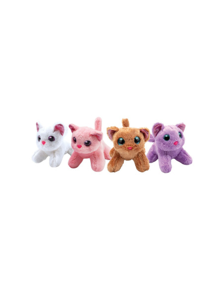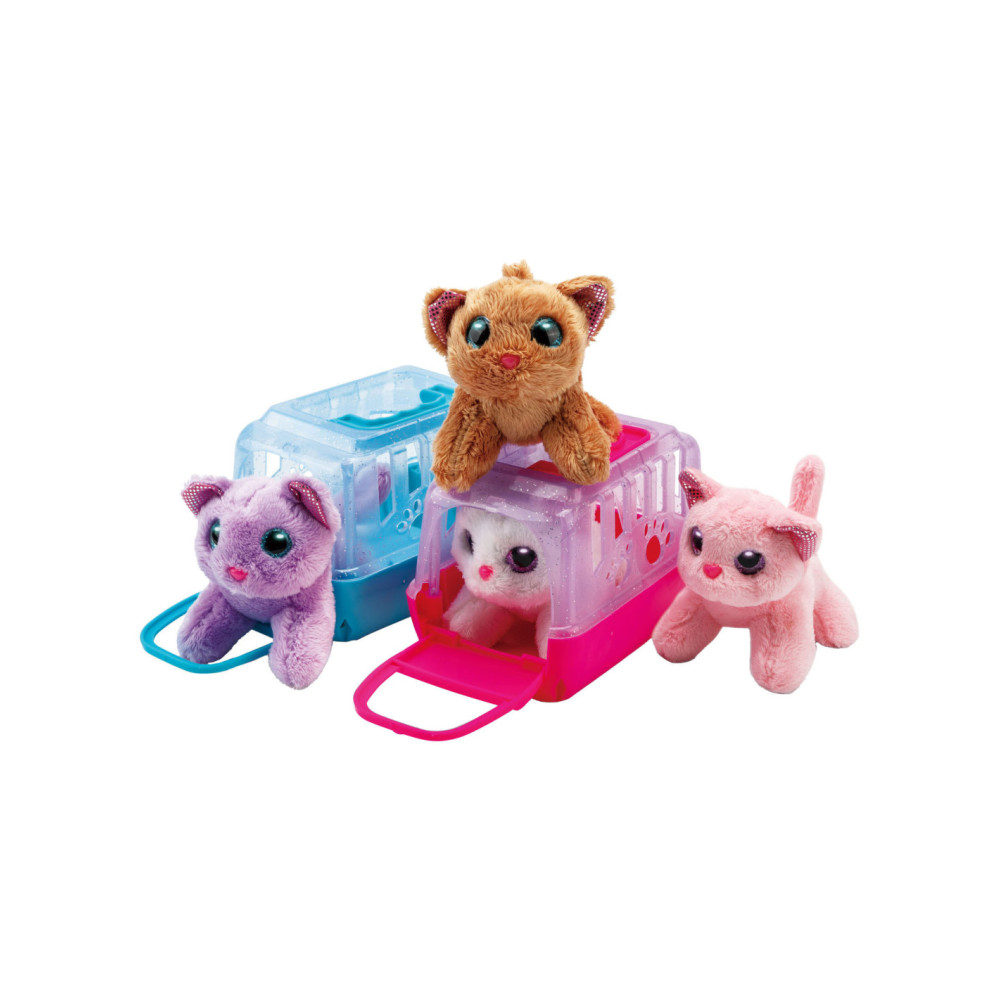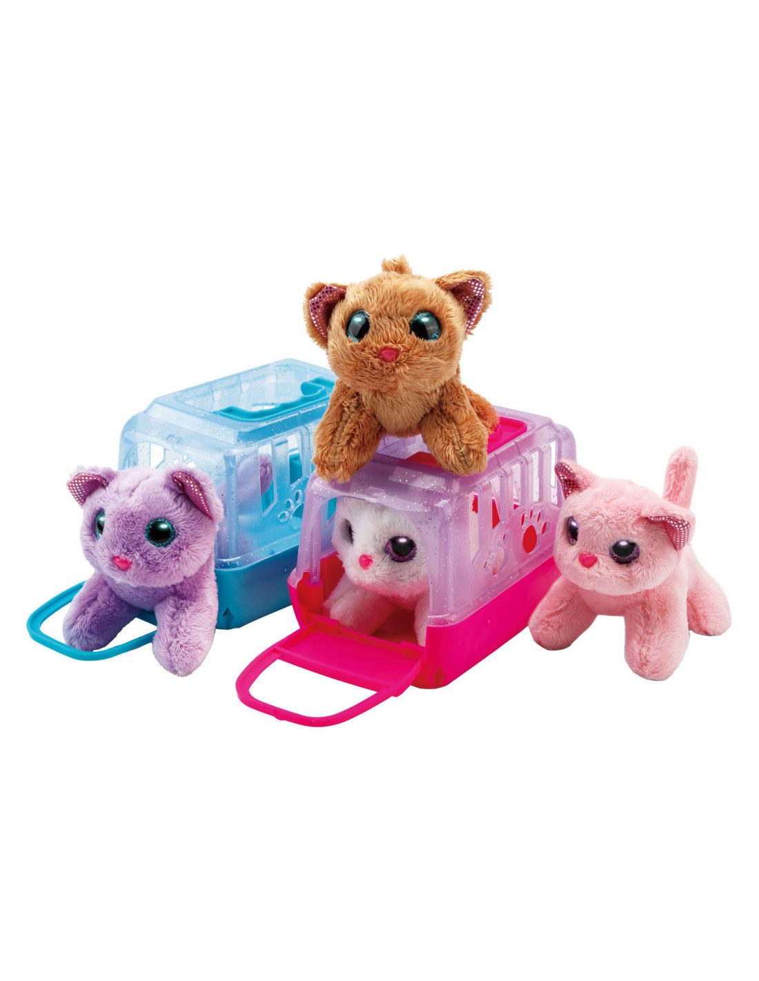 Knuffel kat in kunststof reiskoffer. Afmetingen reiskoffer: 28,5 bij 31 bij 20,5 cm. Geschikt voor kinderen vanaf 3 jaar.