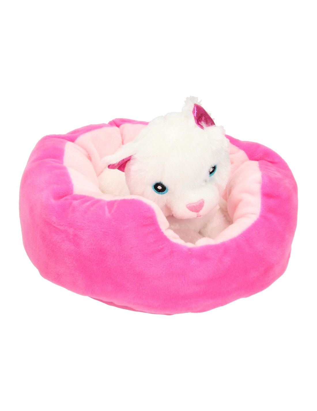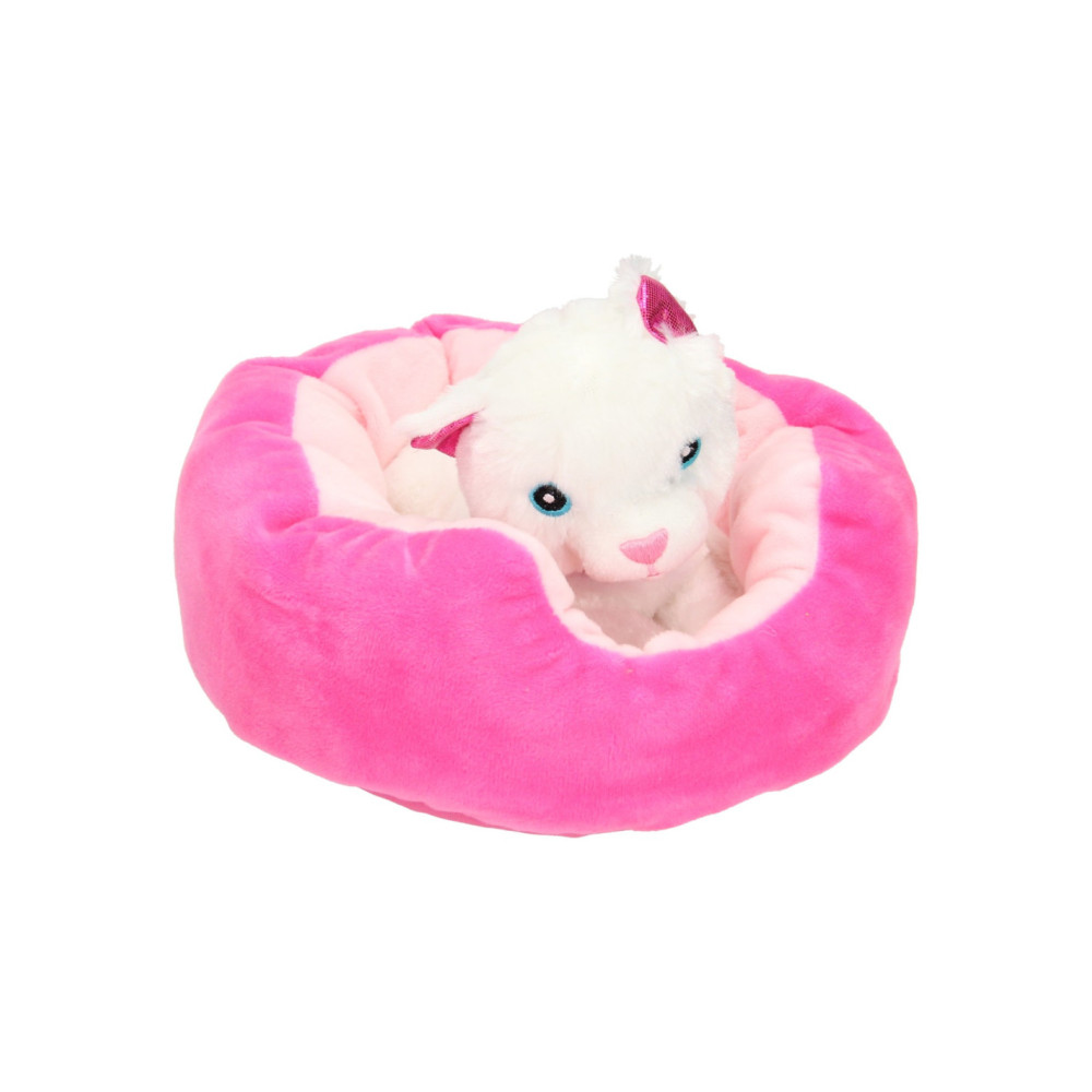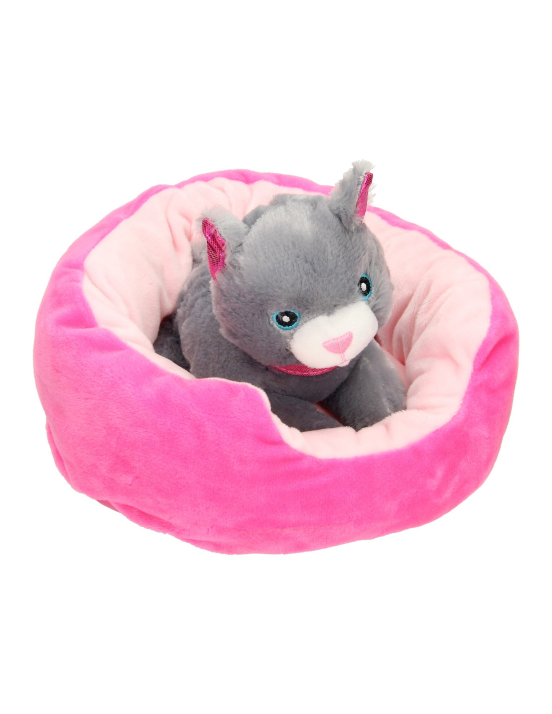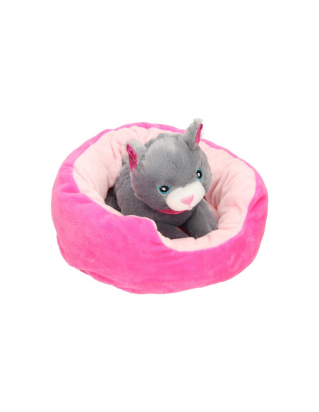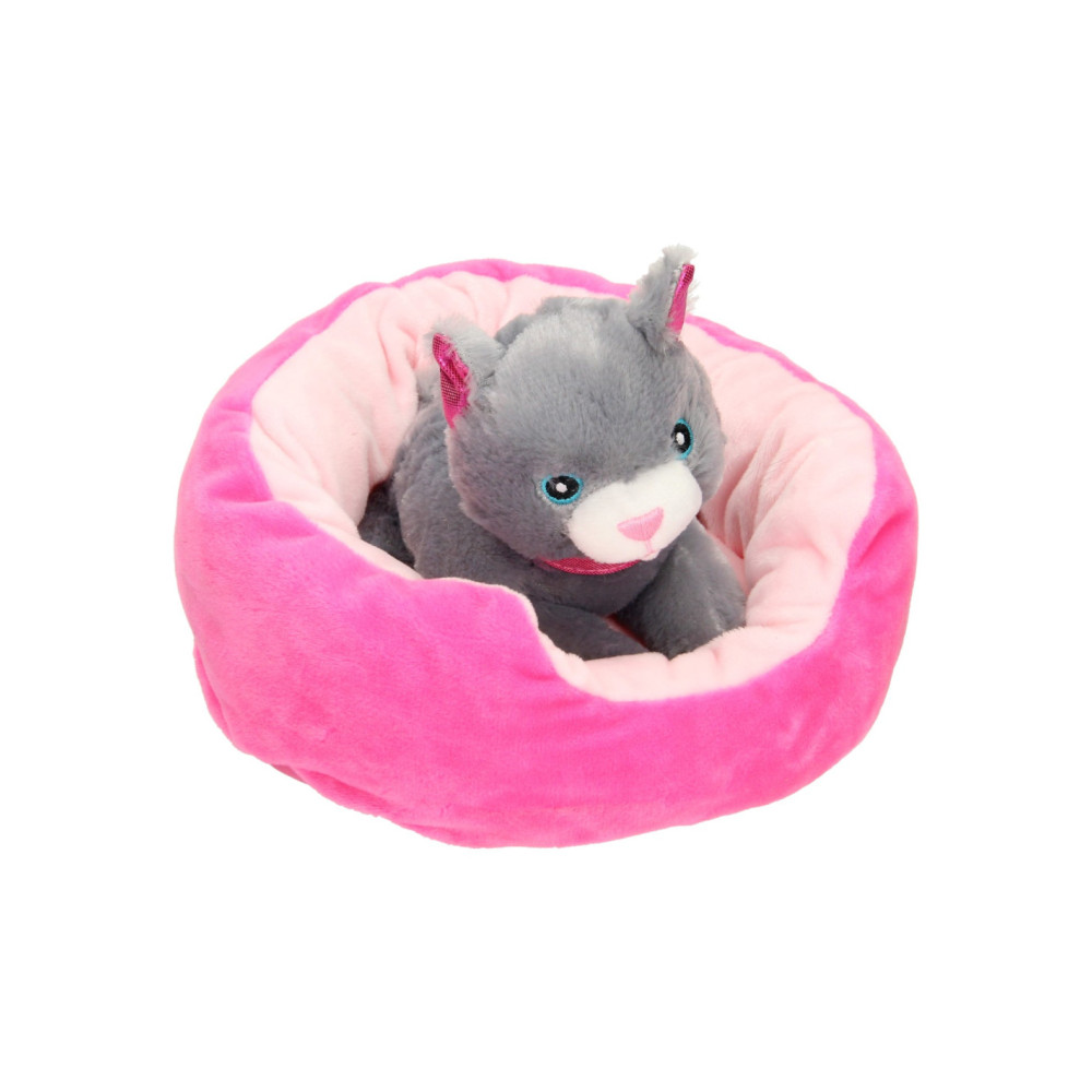 Pluchen poes in een mandje. 22x24 cm groot en geschikt vanaf 2 jaar.