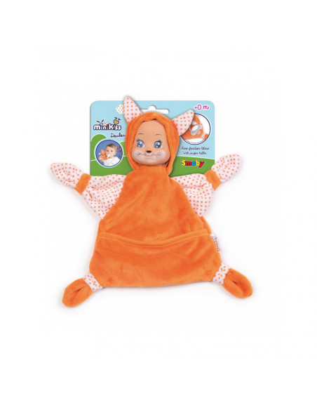 Knuffel- en speendoekje van Smoby. Dit kleine popje is van zachte stof gemaakt en verkleed als bosdiertje. Uitvoering: vos. Het knuffeltje heeft een fopspeenclip en opbergzakje en is 20 centimeter groot. Geschikt vanaf de geboorte.