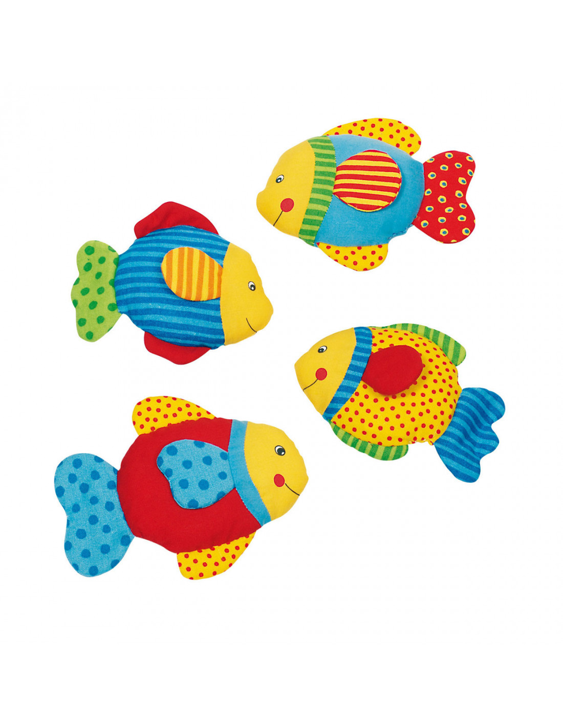 Zacht knuffel visje met knisperend geluid. Prijs per stuk, verschillende uitvoeringen/kleuren worden door elkaar geleverd.