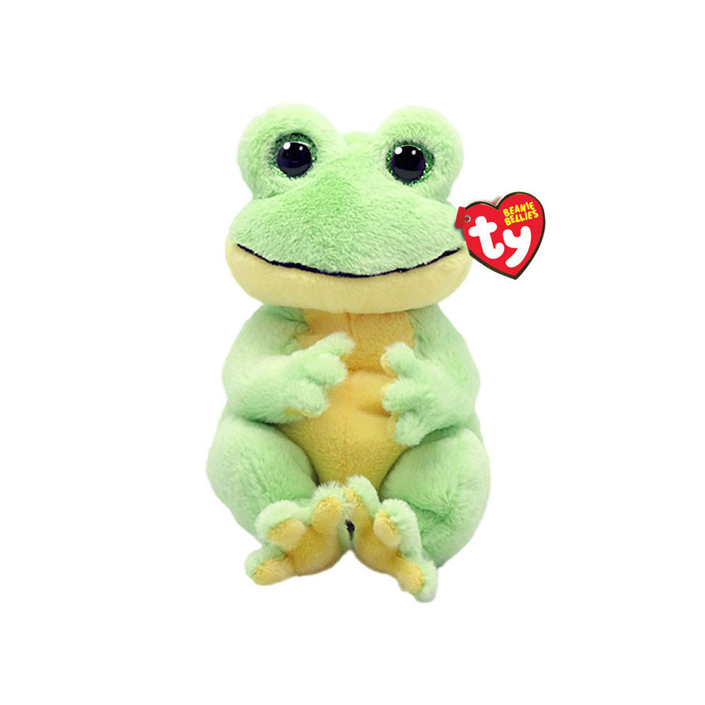 Ty Beanie Babies Bellies Snapper is een 15 cm grote pluche kikker. 'Leliebladeren plakken aan mijn voeten en helpen me vliegen te vangen om te eten. Ze zijn ook als een waterbed: een comfortabele plek om mijn hoofd te laten rusten.'