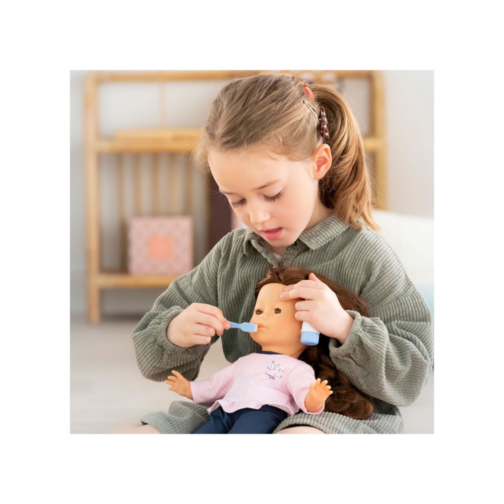 Tandenpoets set voor poppen. Inclusief dummy tandpasta tube, tandenborstel en beker. Geschikt voor kinderen vanaf 3 jaar oud.